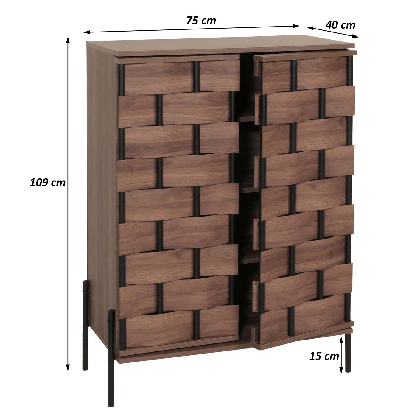 - Deuroppervlak in gevlochten design- Drie planken- Twee deuren- Deuren met push-to-open-functie- Ideaal te combineren met andere producten uit de M44-serie- Deze ladekast is voorzien van drie ruime planken en heeft twee elegante deuren met een indrukwekkend deuroppervlak in een aantrekkelijk geweve...