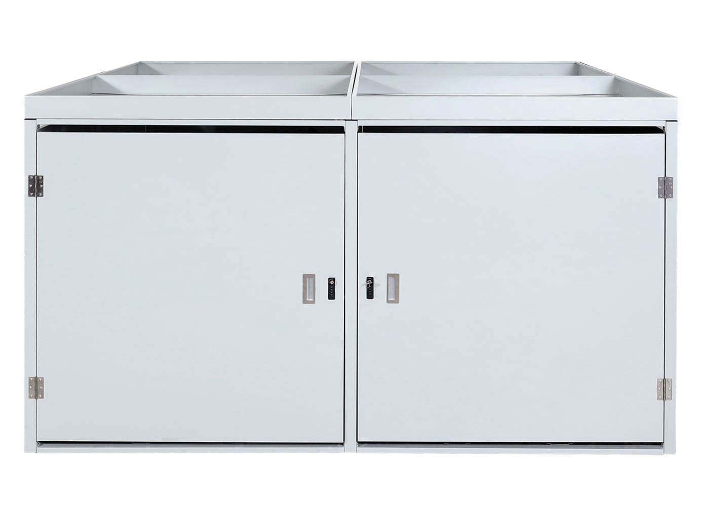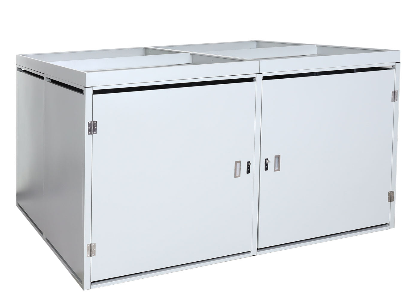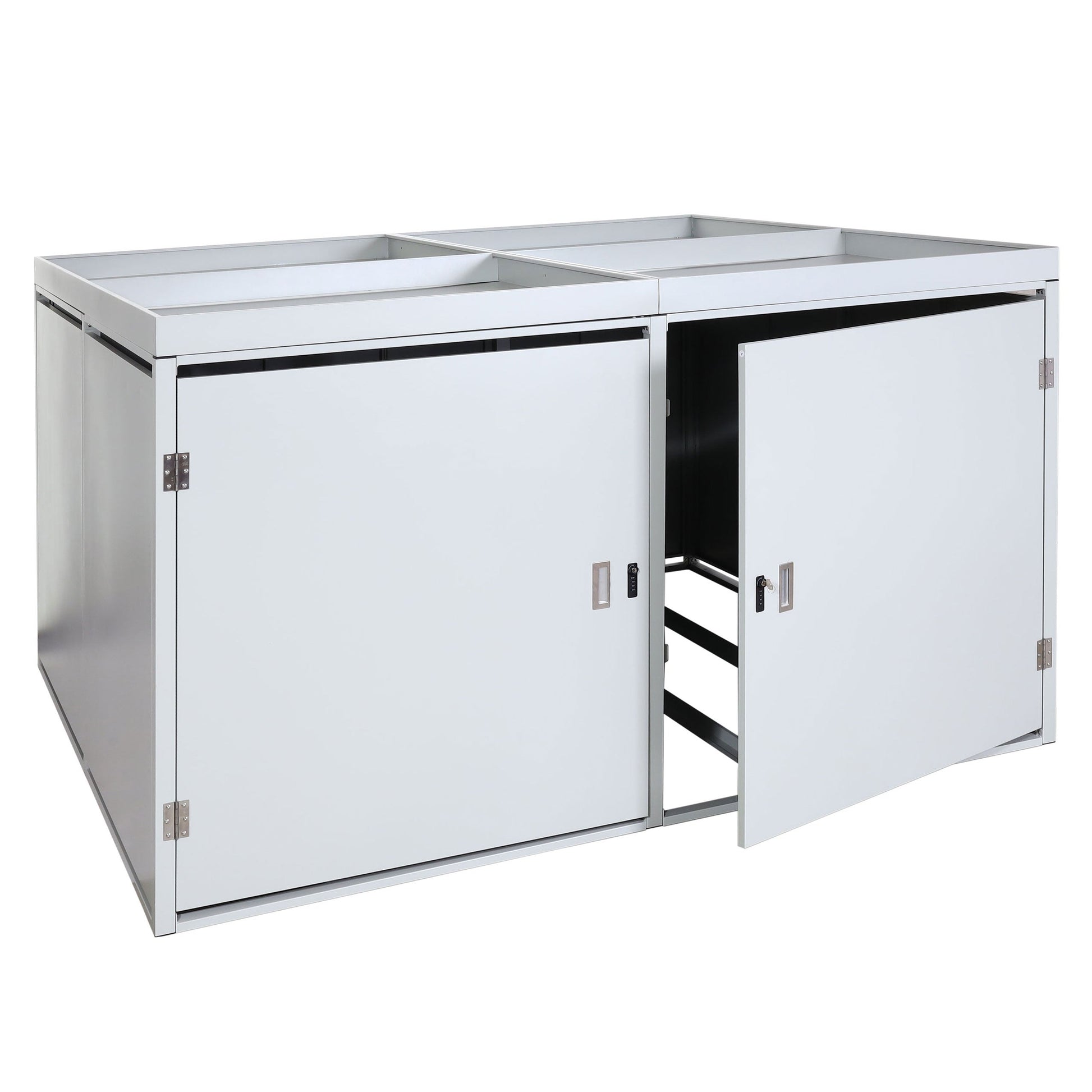 - Bescherming tegen diefstal dankzij afsluitbare deuren- Incl. Sleutel voor deurslot, slot ook met pinslot- Deur kan links of rechts worden bevestigd- Plantenbak met waterafvoergaten- Ruimtebesparend opbergen- Met rails voor de fietsen- De rails zijn ideaal voor fietsen met banden tot 5 cm breed- Ha...