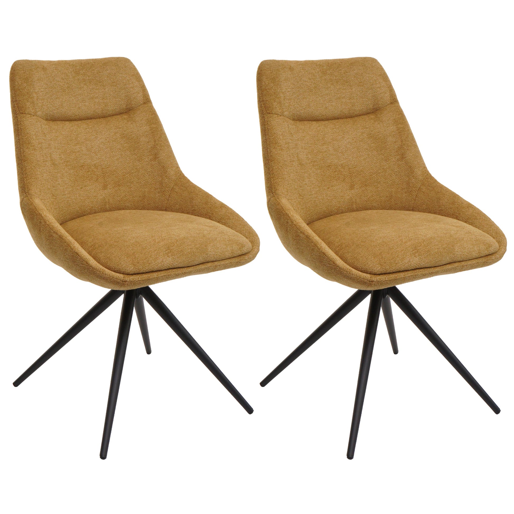 Cosmo Casa - Set van 2 Eetkamerstoelen - Keukenstoel - Draaibaar met Automatische Positionering - Textiel - Mosterdgeel | Standaard | €379,95