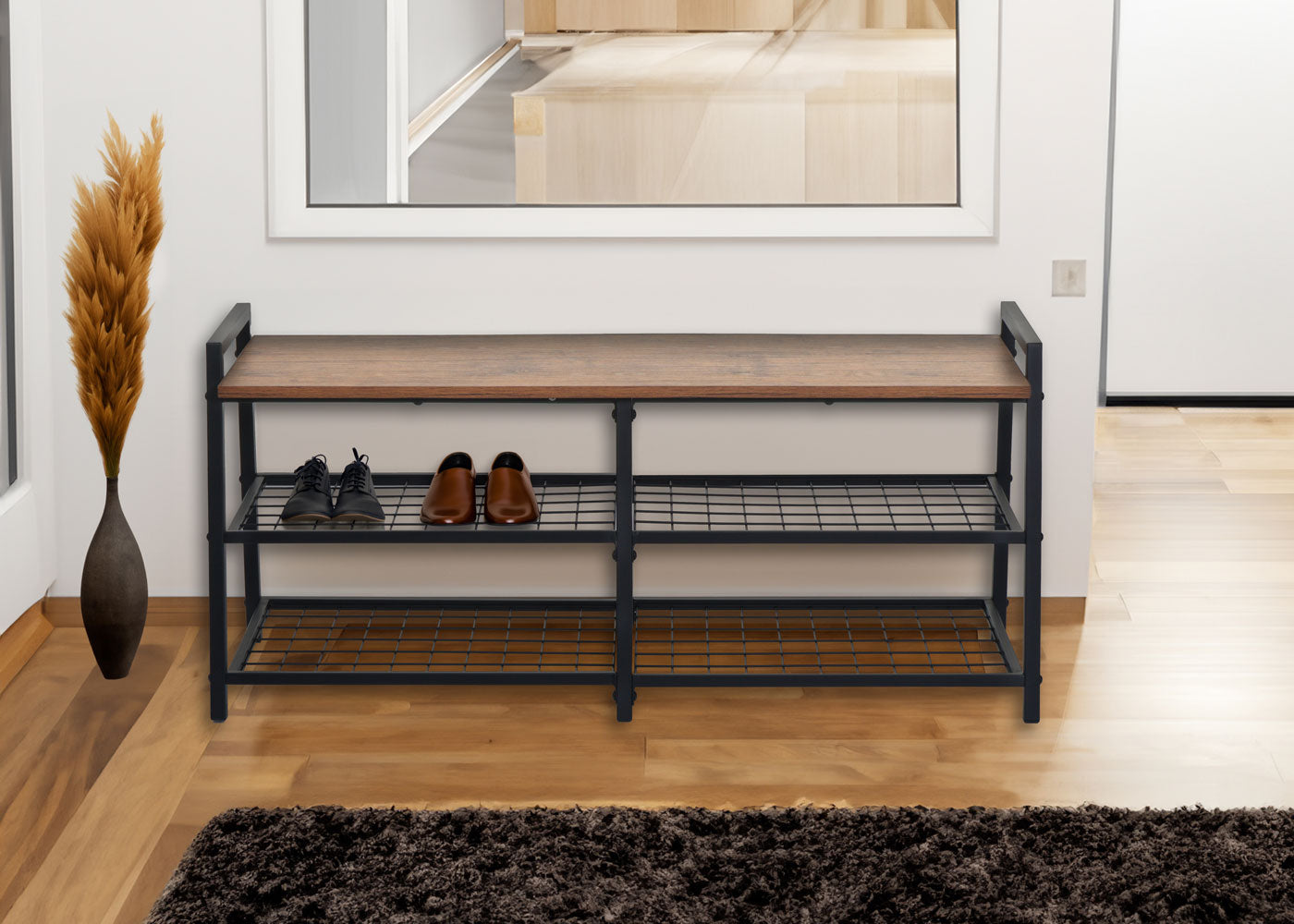 Cosmo Casa - Schoenenrek Bank - 4 Vakken met Metalen 3D-structuur - Wild Eiken Look | Standaard | ā¬89,95