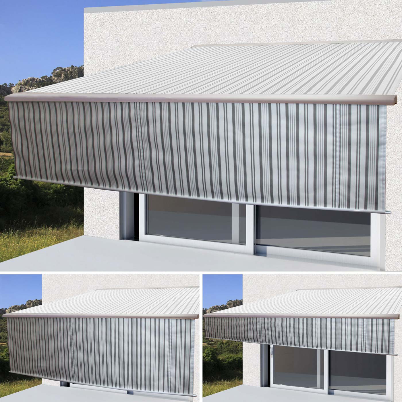 Cosmo Casa - Volant voor Elektrisch Cassettescherm - Uitschuifbare Volant 5x3m - Polyester - Grijs-Wit | Standaard | €135,95