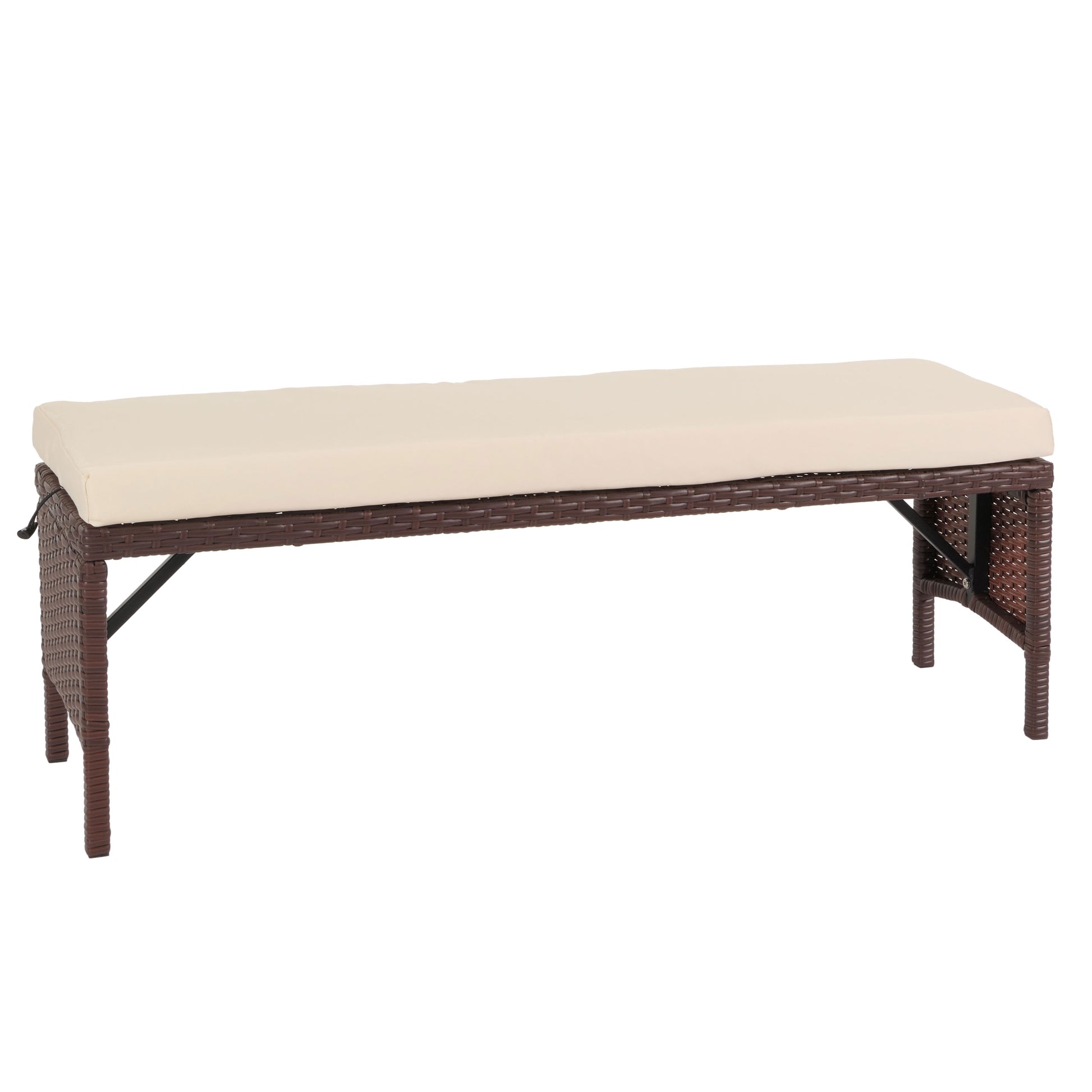Cosmo Casa - Tuinbank - Polyrotan - Kussen - Bruin en Crème - 112 cm | Standaard | €75,95