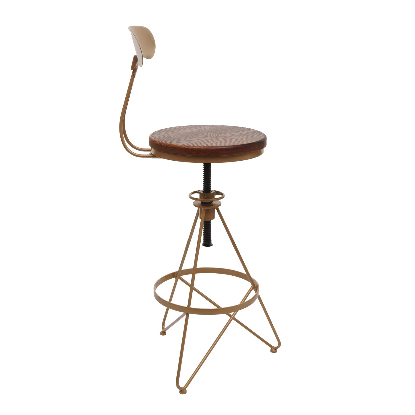 Cosmo Casa - Set van 2 Barkrukken - Verstelbare Hoogte - Draaibare Voetsteun - Industrieel Metaal & Hout - Bruin - Gouden Frame | Standaard | €279,95
