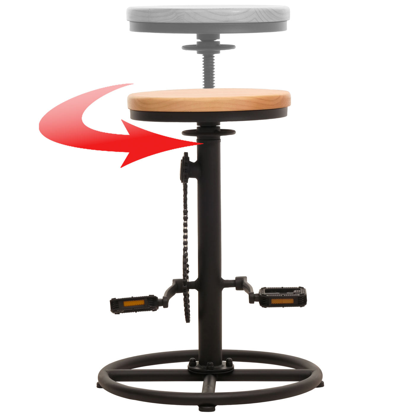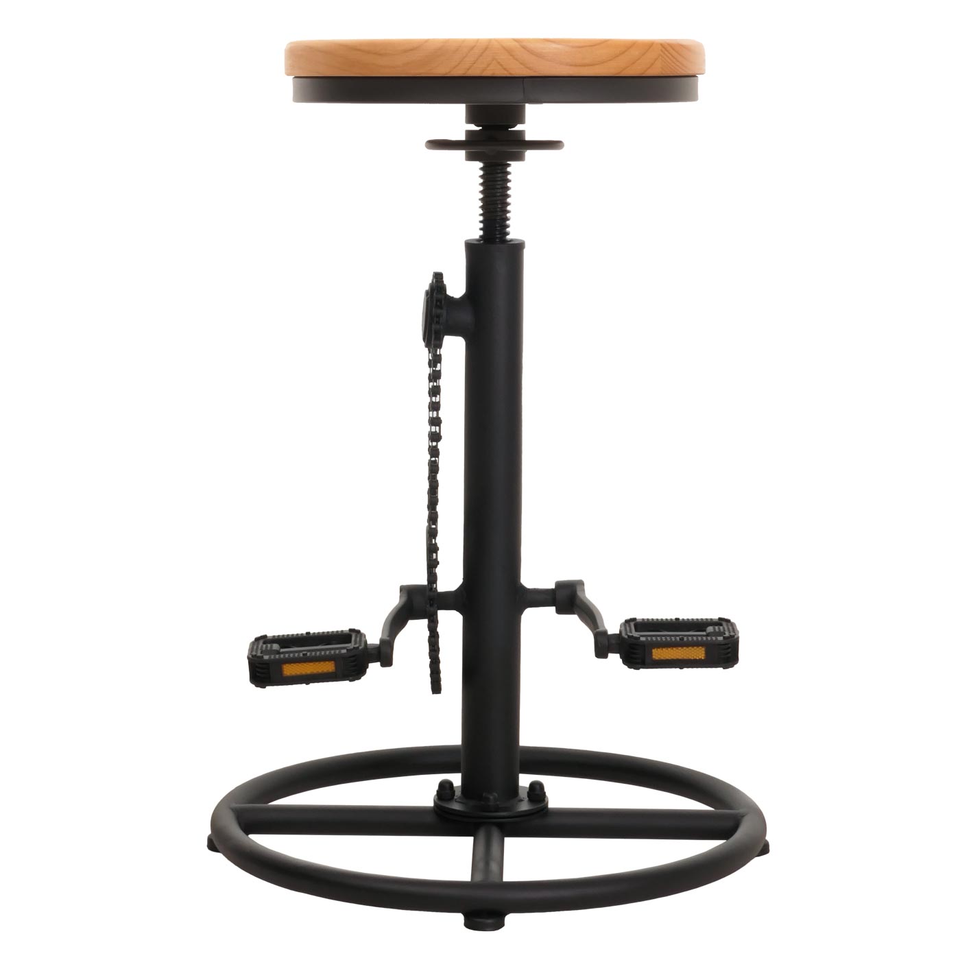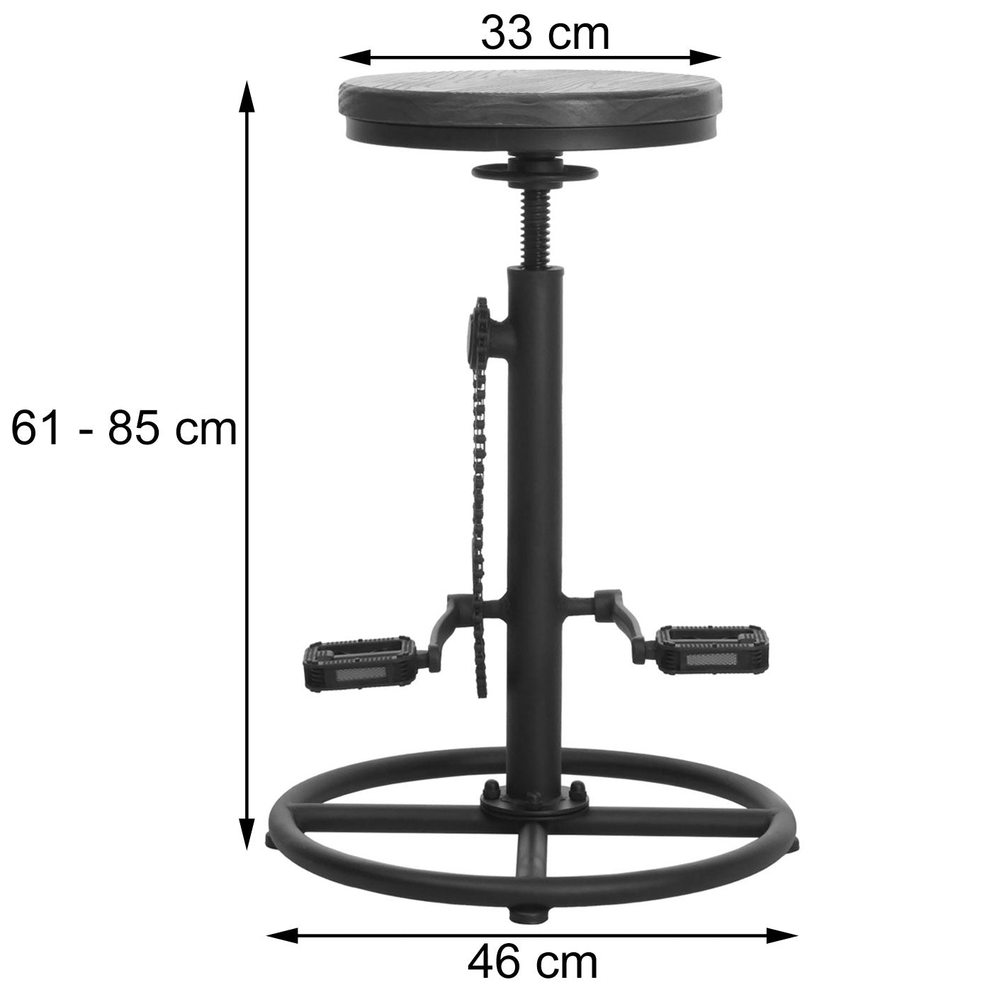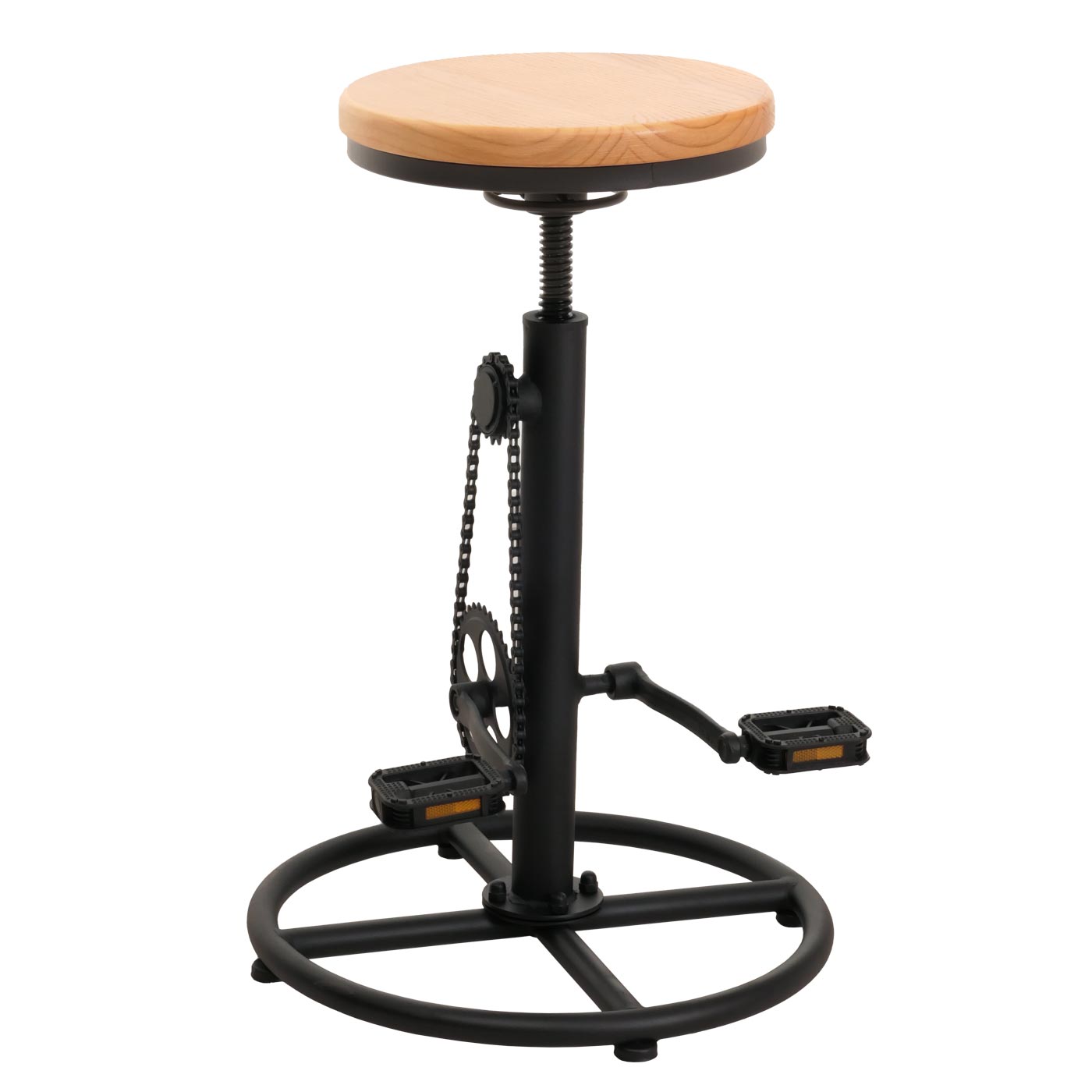 - Barkruk in industrieel fietsdesign- 360° draaibaar- Traploos in hoogte verstelbaar door middel van een draaibare spindel- Decoratieve ketting met pedalen als voetsteun- Stabiel ijzeren frame- Zitting van grenenhout met 3D-structuur- Maximaal permanent draagvermogen: 150 kg - Deze chique barkruk i...