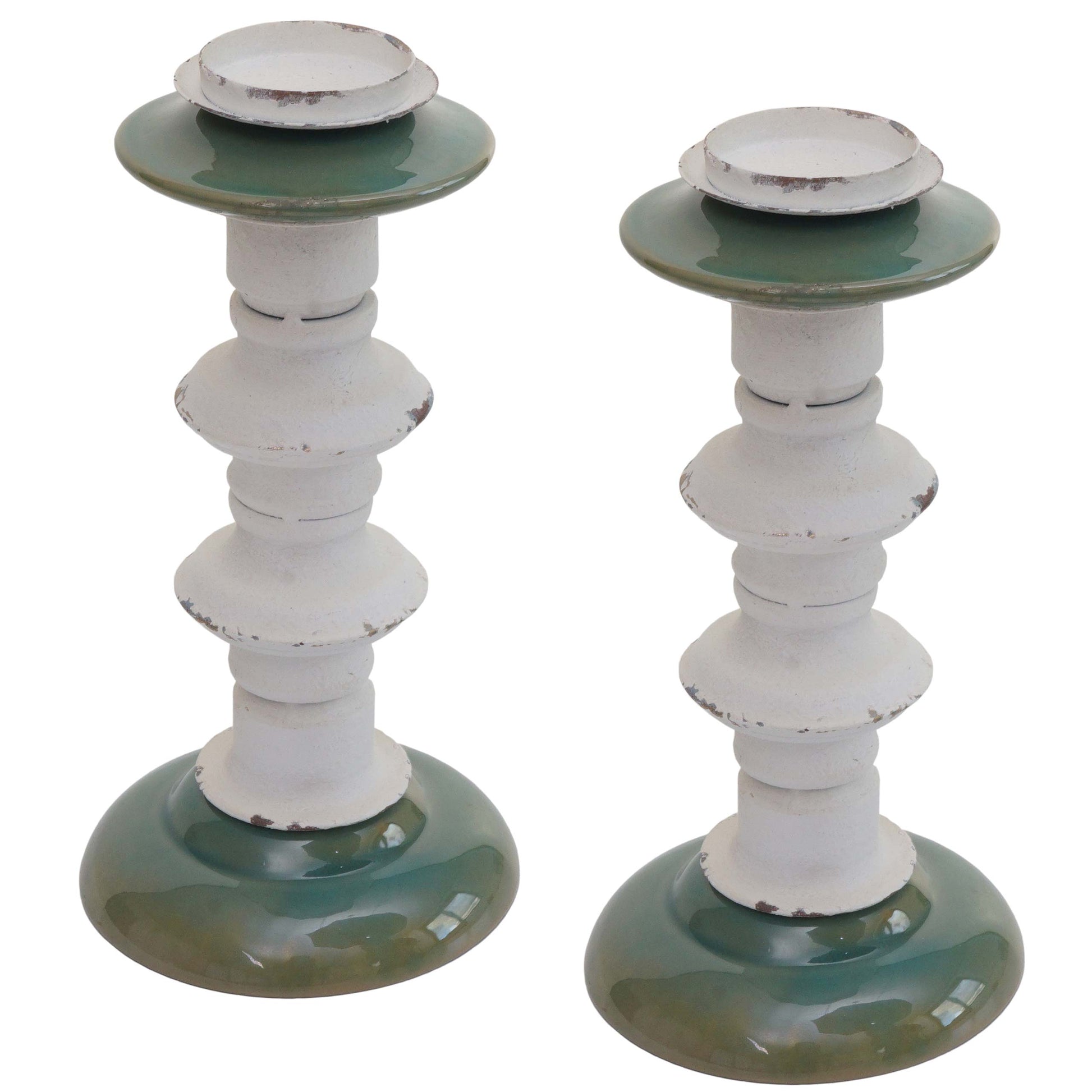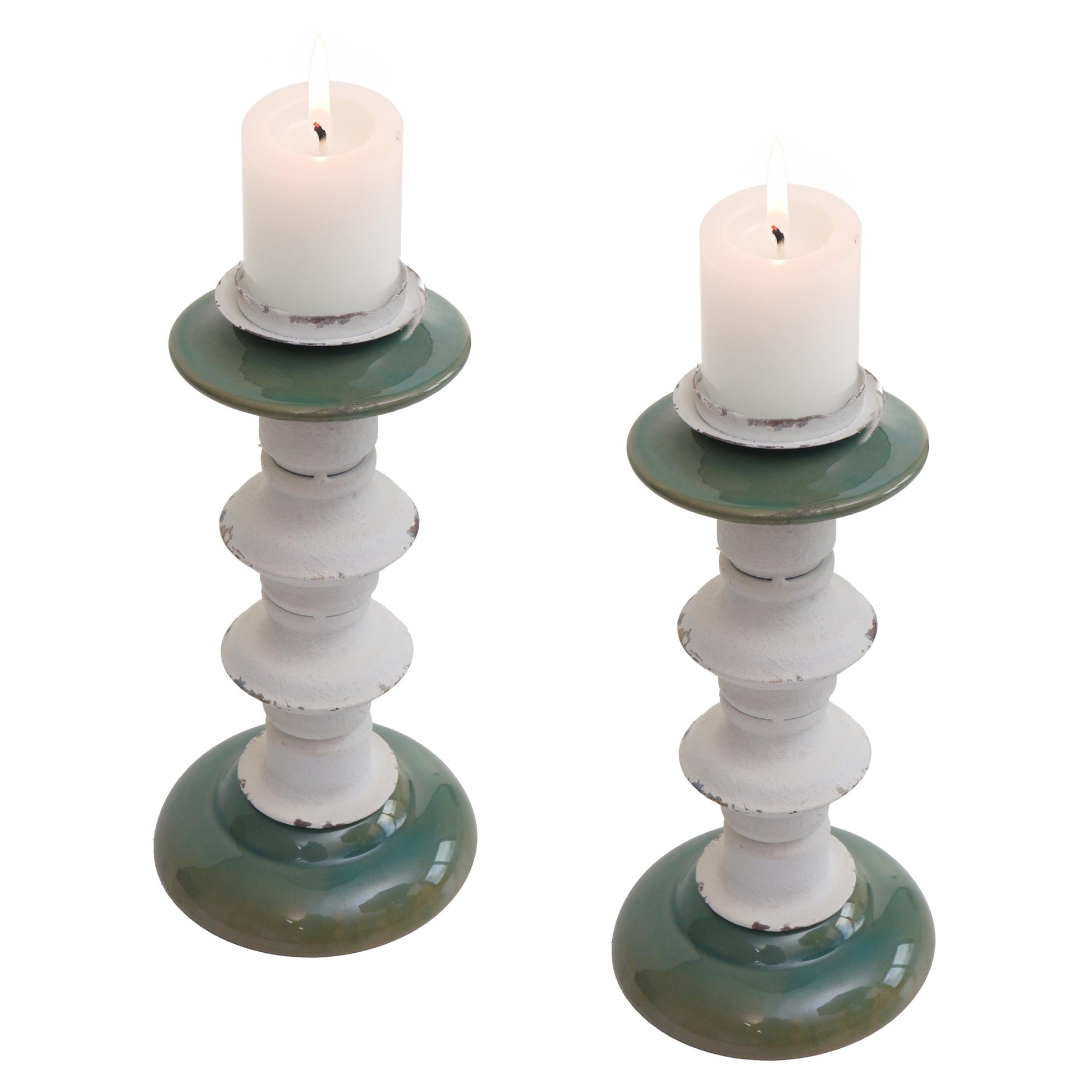 Cosmo Casa - Set van 2 Kandelaars - Kandelaar Kaarsenzuil - Shabby Look - Vintage Metaal Keramiek - Hoogte 25cm | Standaard | ā¬56,95