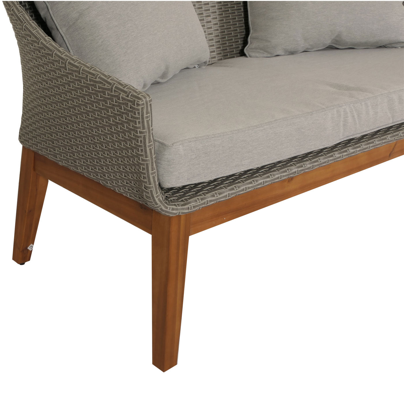 Cosmo Casa - Tuinloungeset - Bank Zitgroep - Polyrotan en Acaciahout - Grijs - Lichtgrijze Kussens | Standaard | €1.599,95