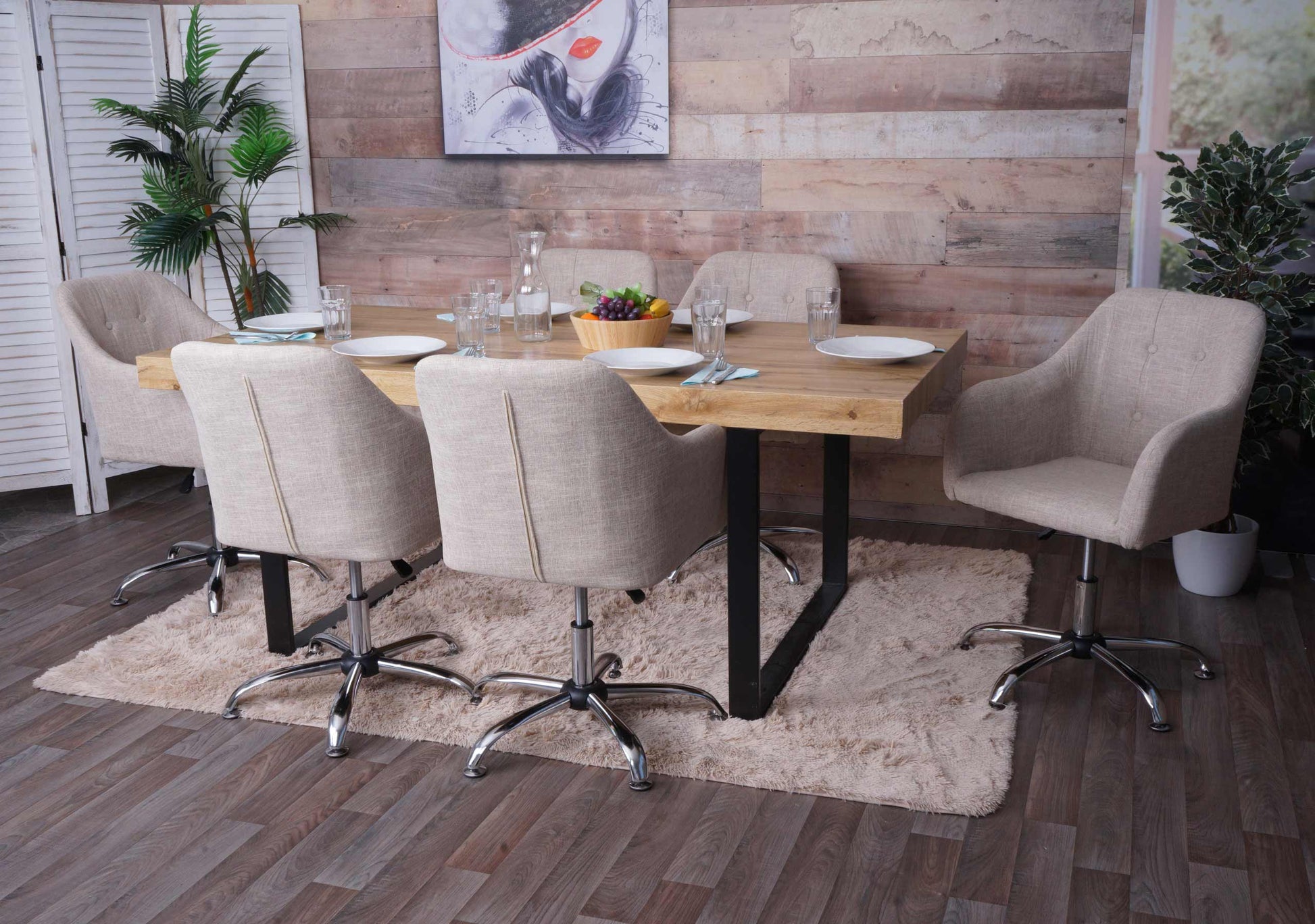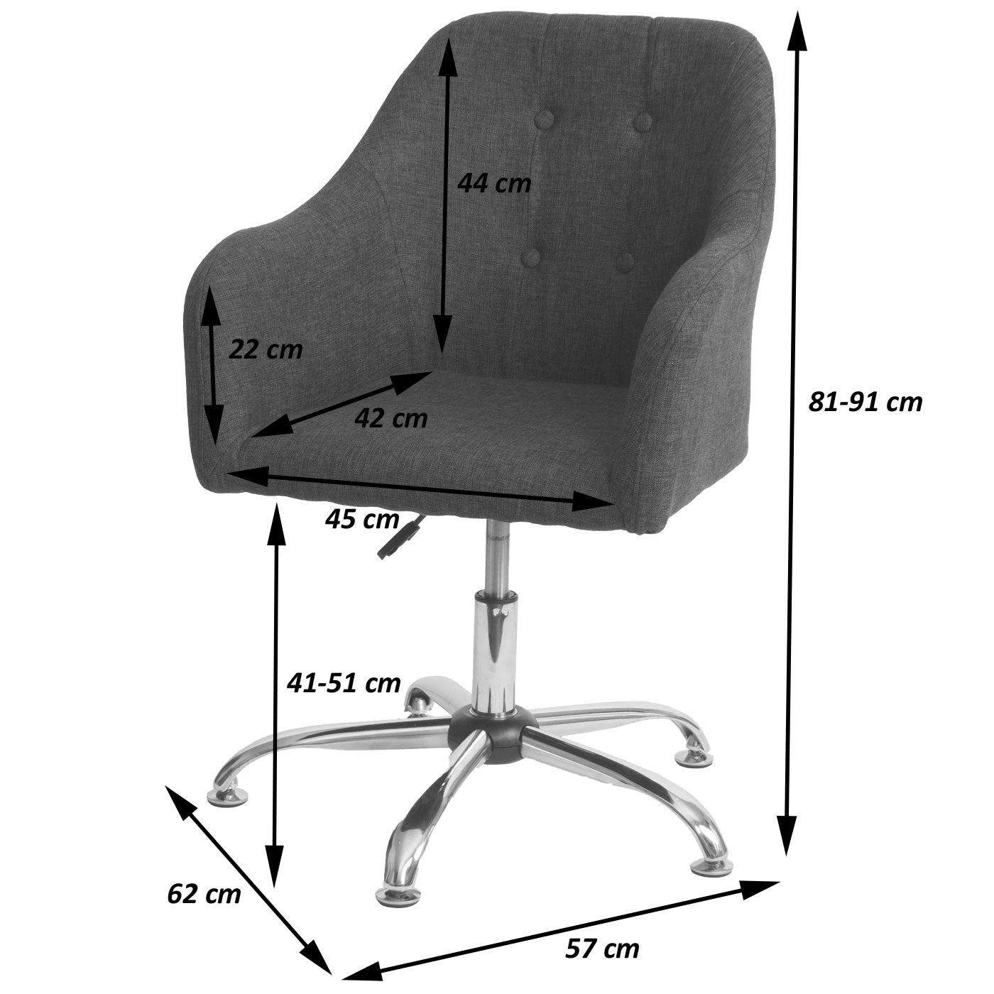 - Traploos in hoogte verstelbaar- BSCI sociale normen getest- Met vloerglijders voor vrijwel elke vloer- Decoratieve sierknopen en siernaden - 360° draaibaar- Comfortabele vorm- Met armleuningen- Stabiele basis- Maximale continue belasting: 120 kg - Bij een goede maaltijd hoort ook een comfortabele...
