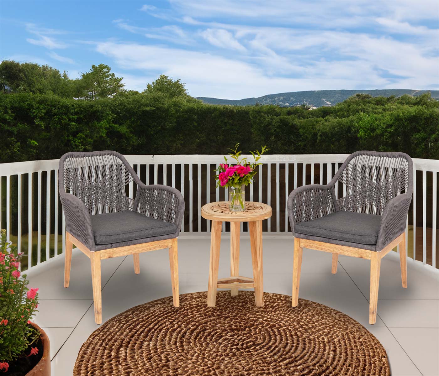 Cosmo Casa - Buitenfauteuil - Weerbestendig Touwgaas - Acaciahout - Grijs Kussen - Antraciet