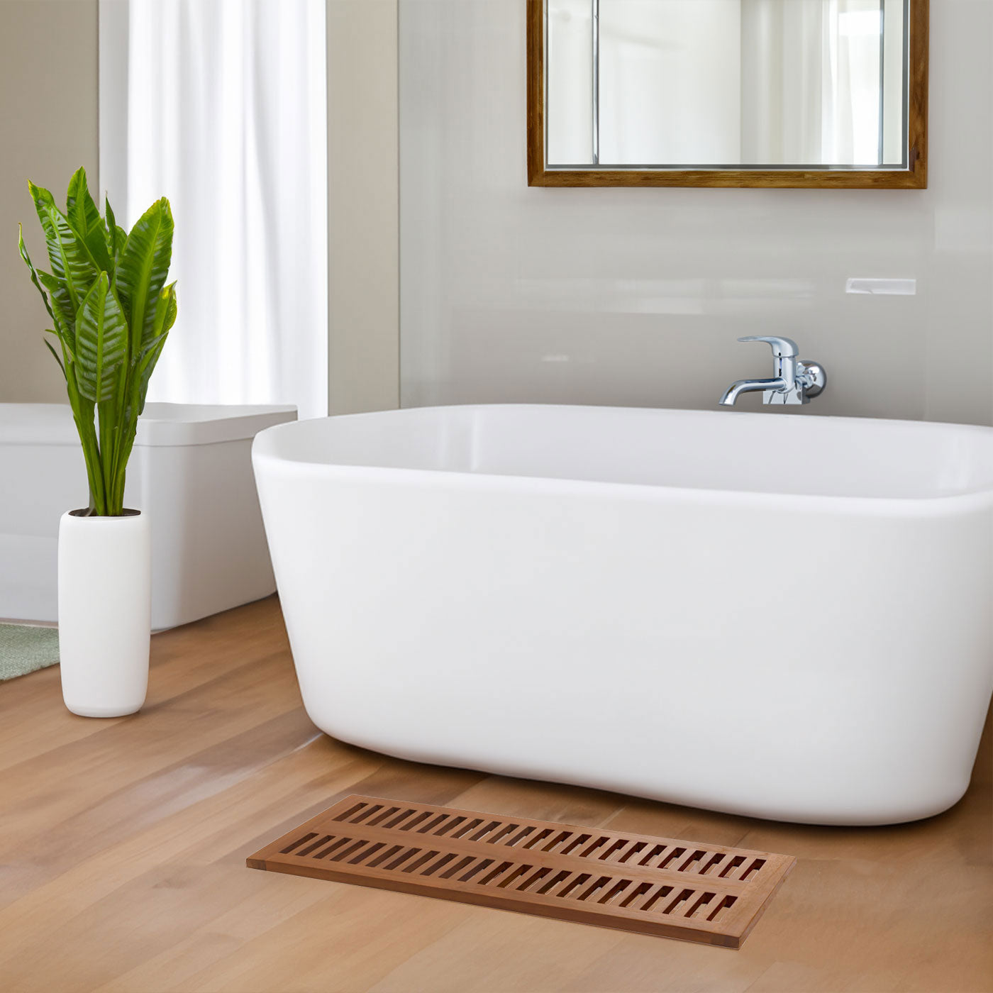 - Ideaal te combineren met andere producten uit onze teakserie- Gemaakt van hoogwaardig teakhout van B-kwaliteit (kernhout, 20-30 jaar)- Teakhout van klasse B overtuigt door lange levensduur- Teakhout van Tectona Grandis - Voor badkamers en sauna's- Met vloerbeschermer - De M86 badmat van hoogwaard...