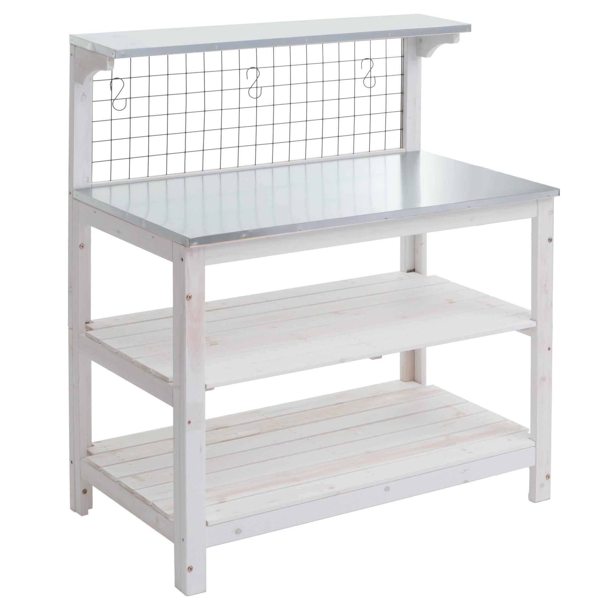 - Met 4 planken- Rasterwand met 3 haken voor keukengerei- Rugvriendelijke werkhoogte- Frame van massief hout- FSC-gecertificeerd (N004267)- Werkblad en bovenste plank van onderhoudsvriendelijke zinkplaat- Uitneembare houten planken - De N55 plantentafel biedt een robuust, onderhoudsvriendelijk opper...
