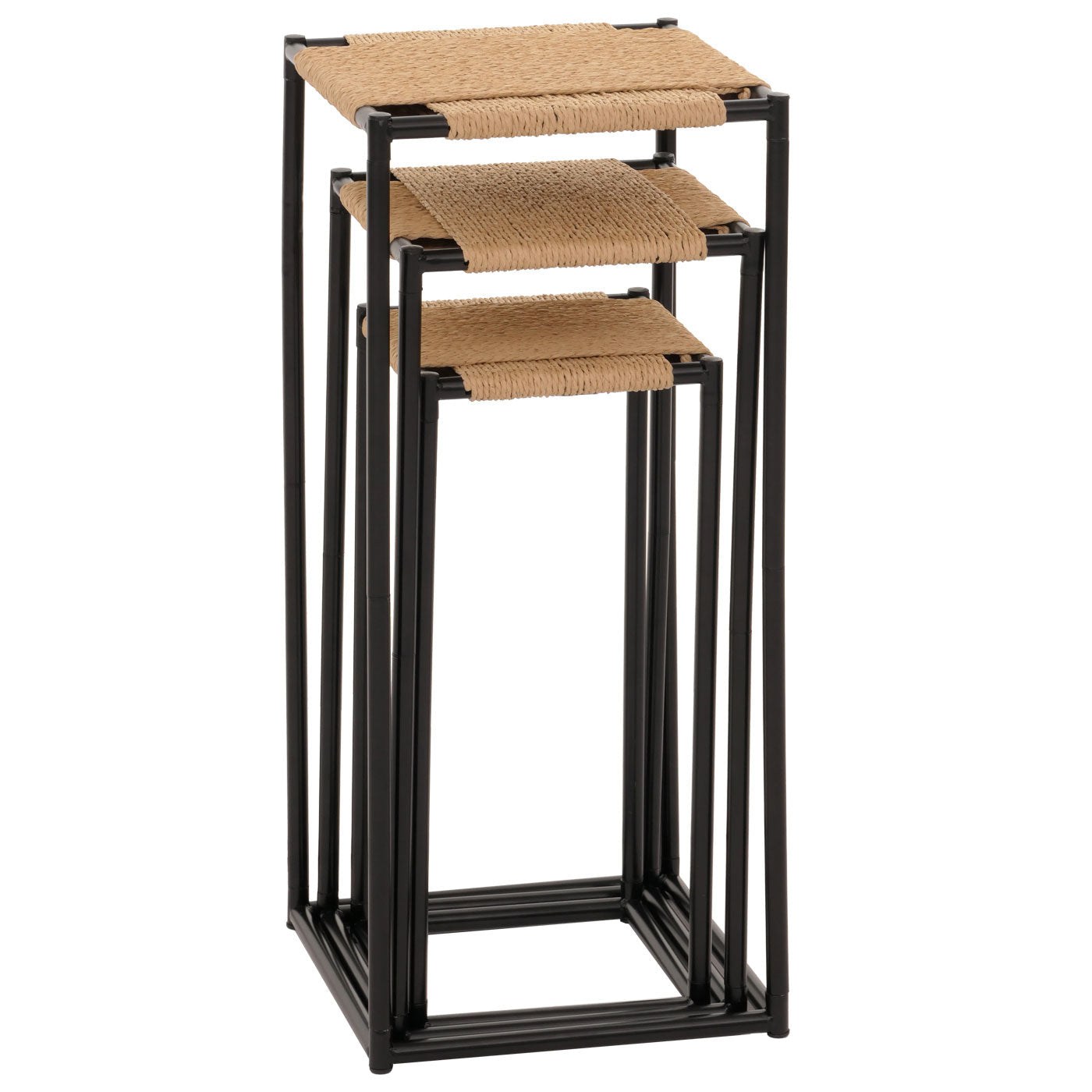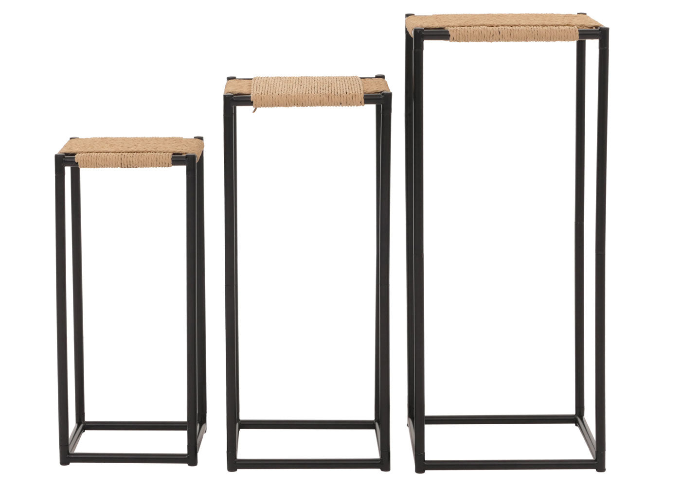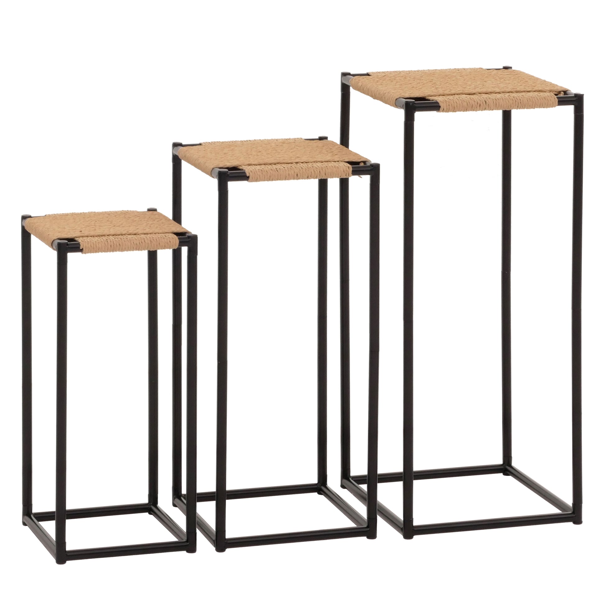 Cosmo Casa - Set van 3 Bloementafels - Stapelbaar Ontwerp - Metaal Papiertouw - Natuurlijke Kleur | Standaard | ā¬75,95