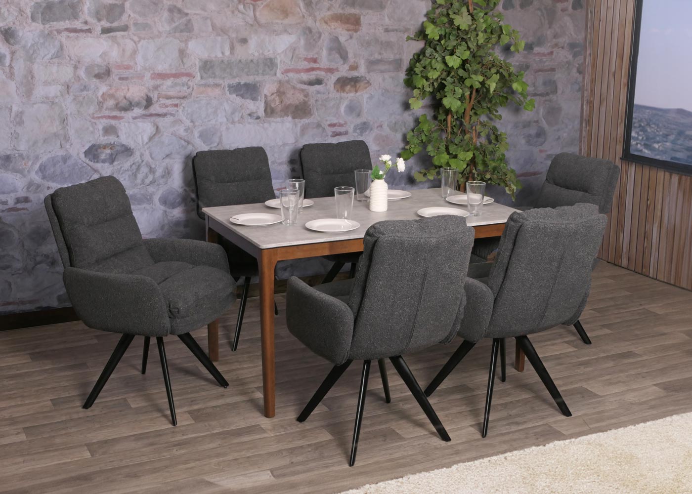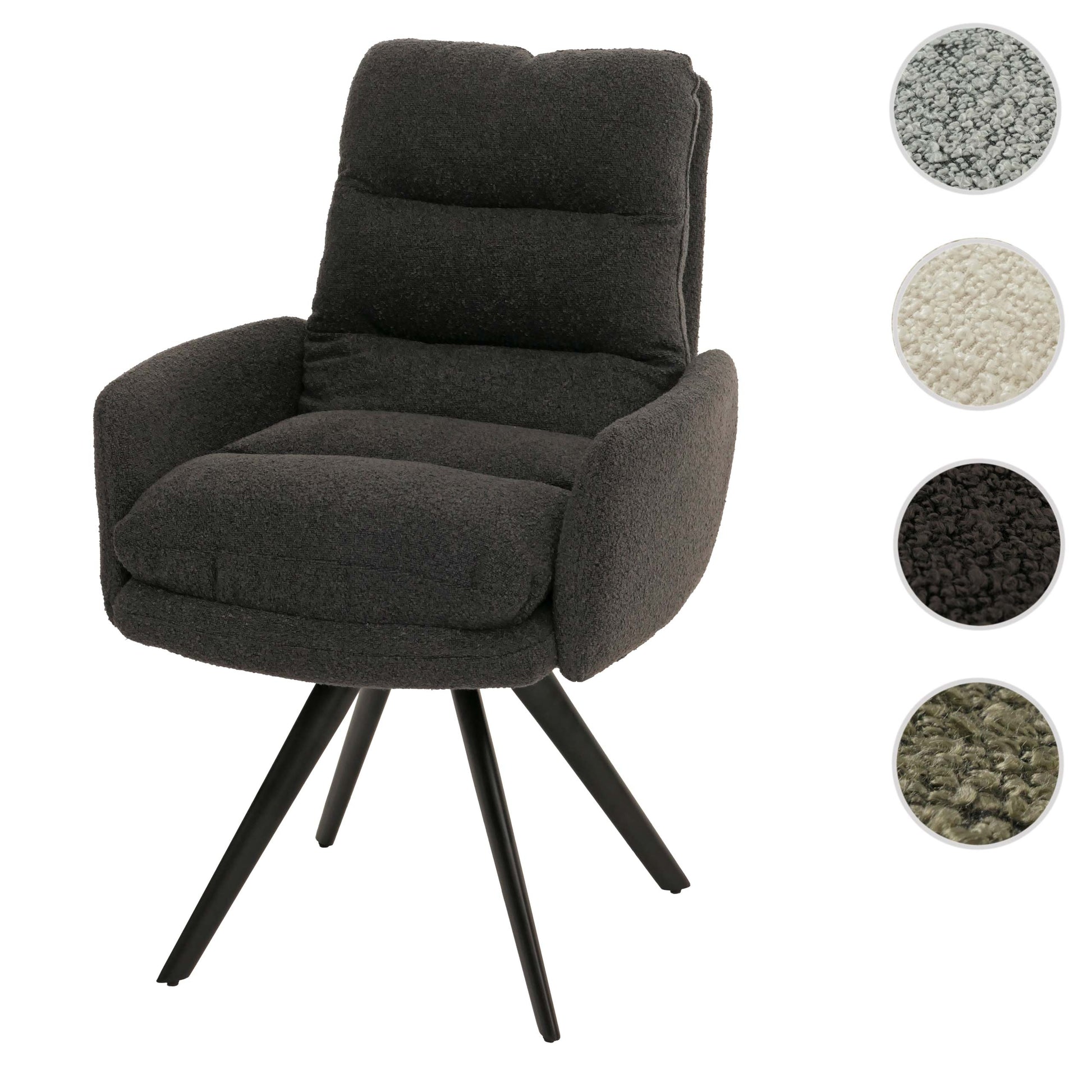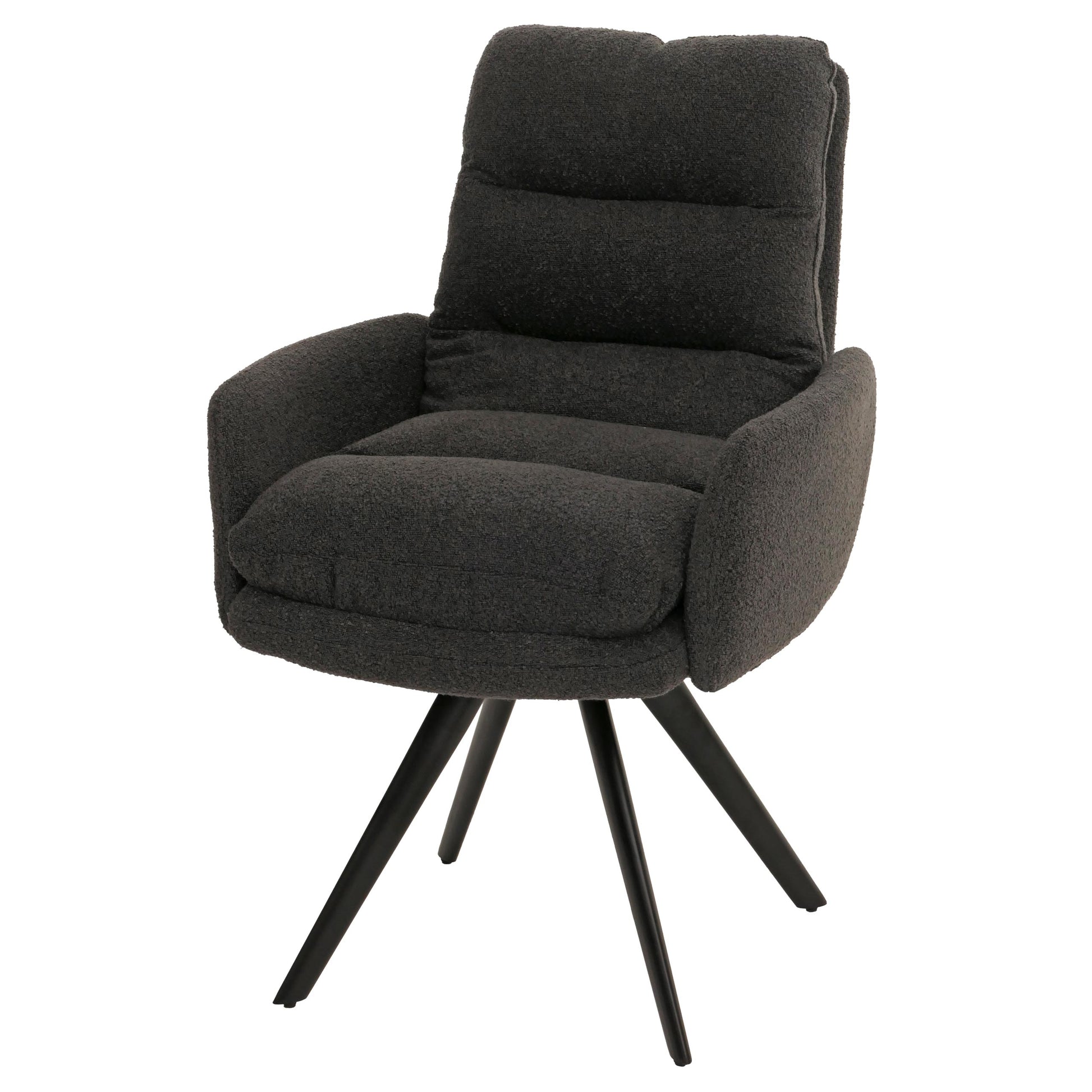 Cosmo Casa - Eetkamerstoel met Armleuningen - Draaibaar Auto-positie - Bouclé Stof - Donkergrijs | Standaard | €219,95