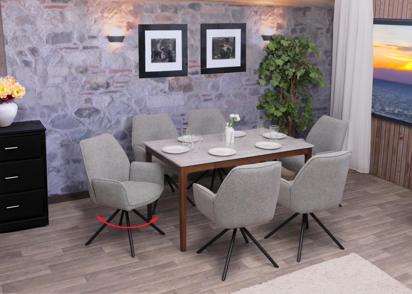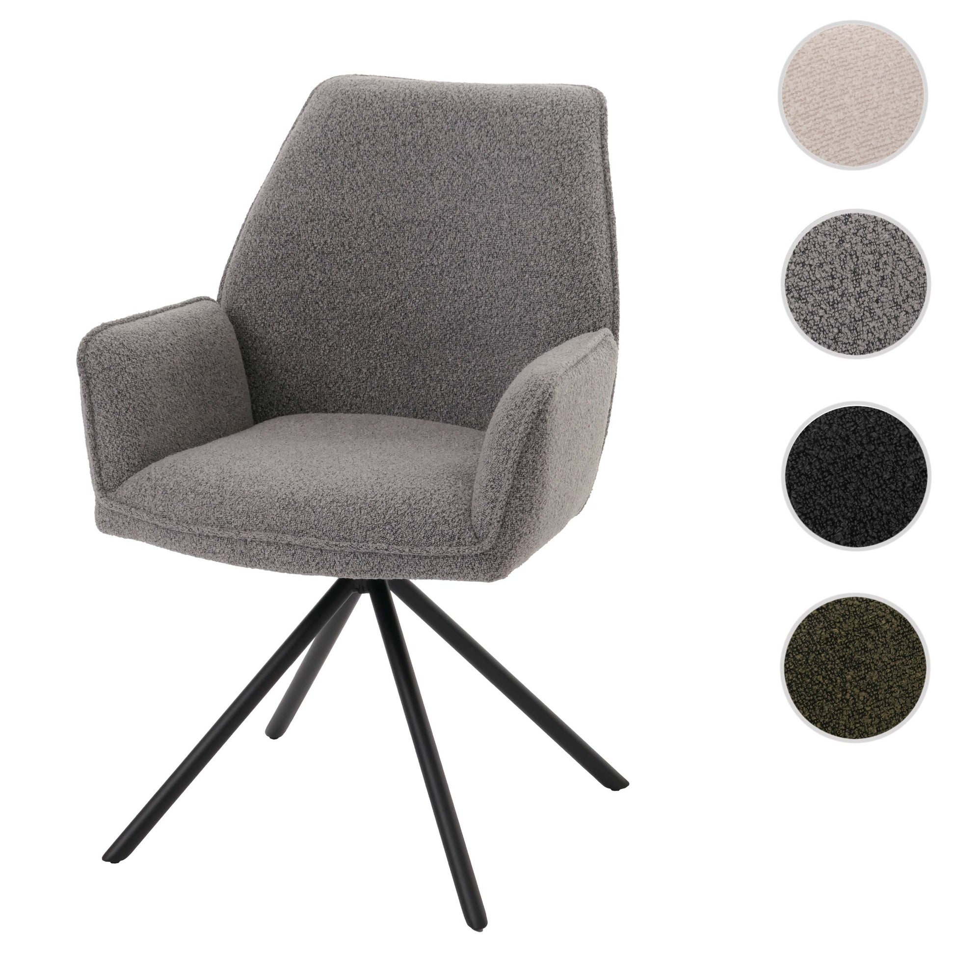 Cosmo Casa - Eetkamerstoel - Keukenstoel met Armleuning - Draaibaar - Automatische Positie - Bouclé Stof - Lichtgrijs