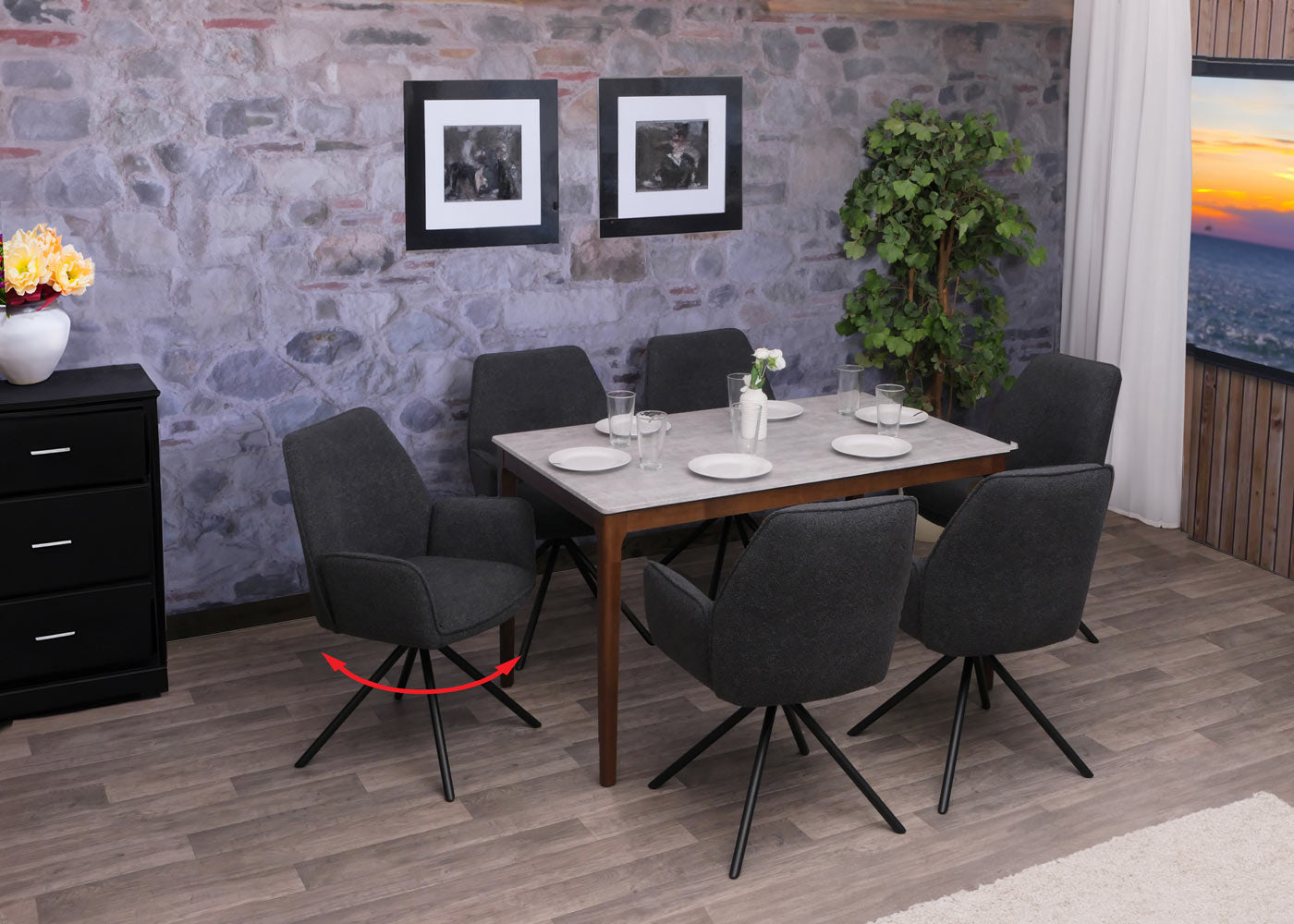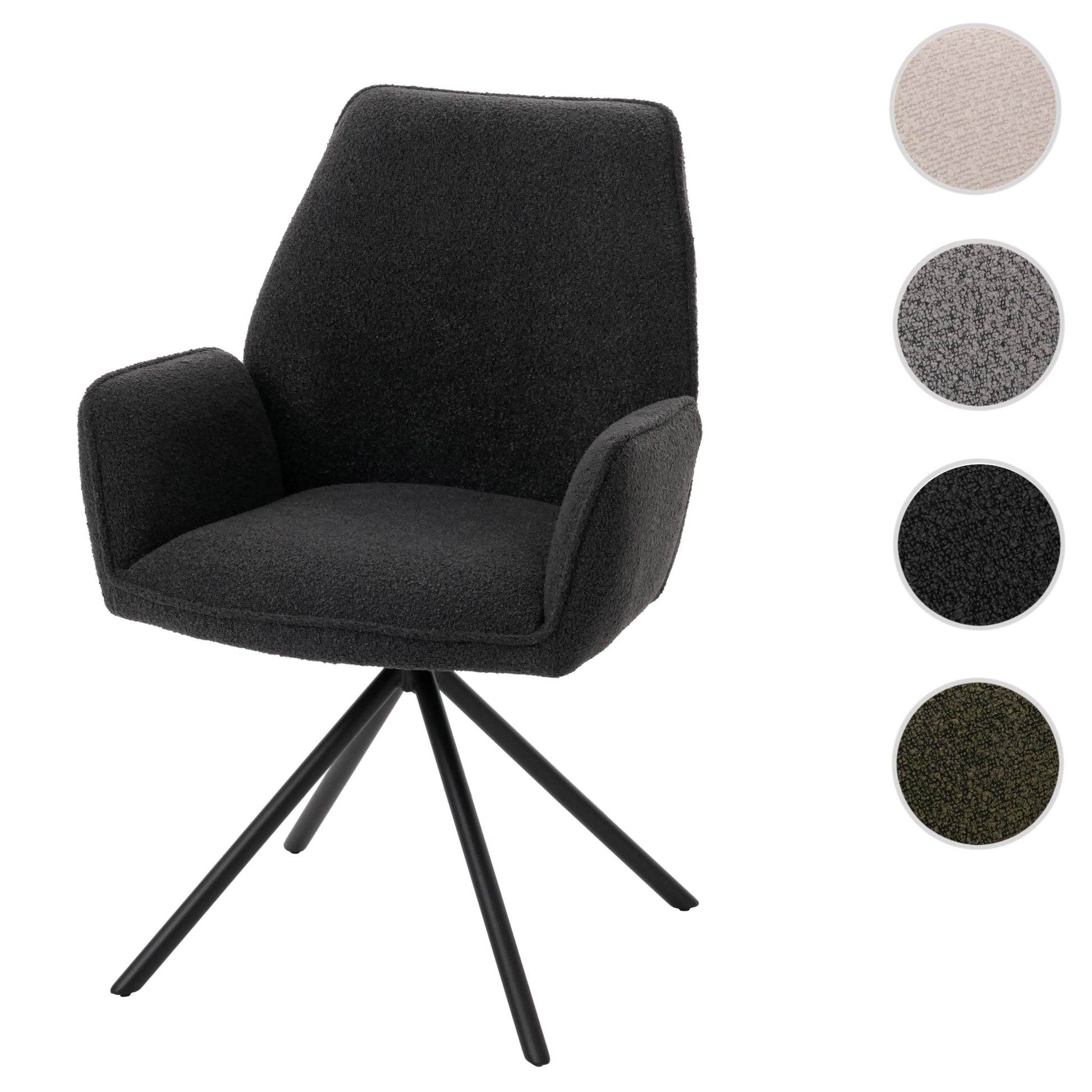 Cosmo Casa - Eetkamerstoel - Keukenstoel met Armleuning - Draaibaar - Automatische Positie - Bouclé Stof - Donkergrijs