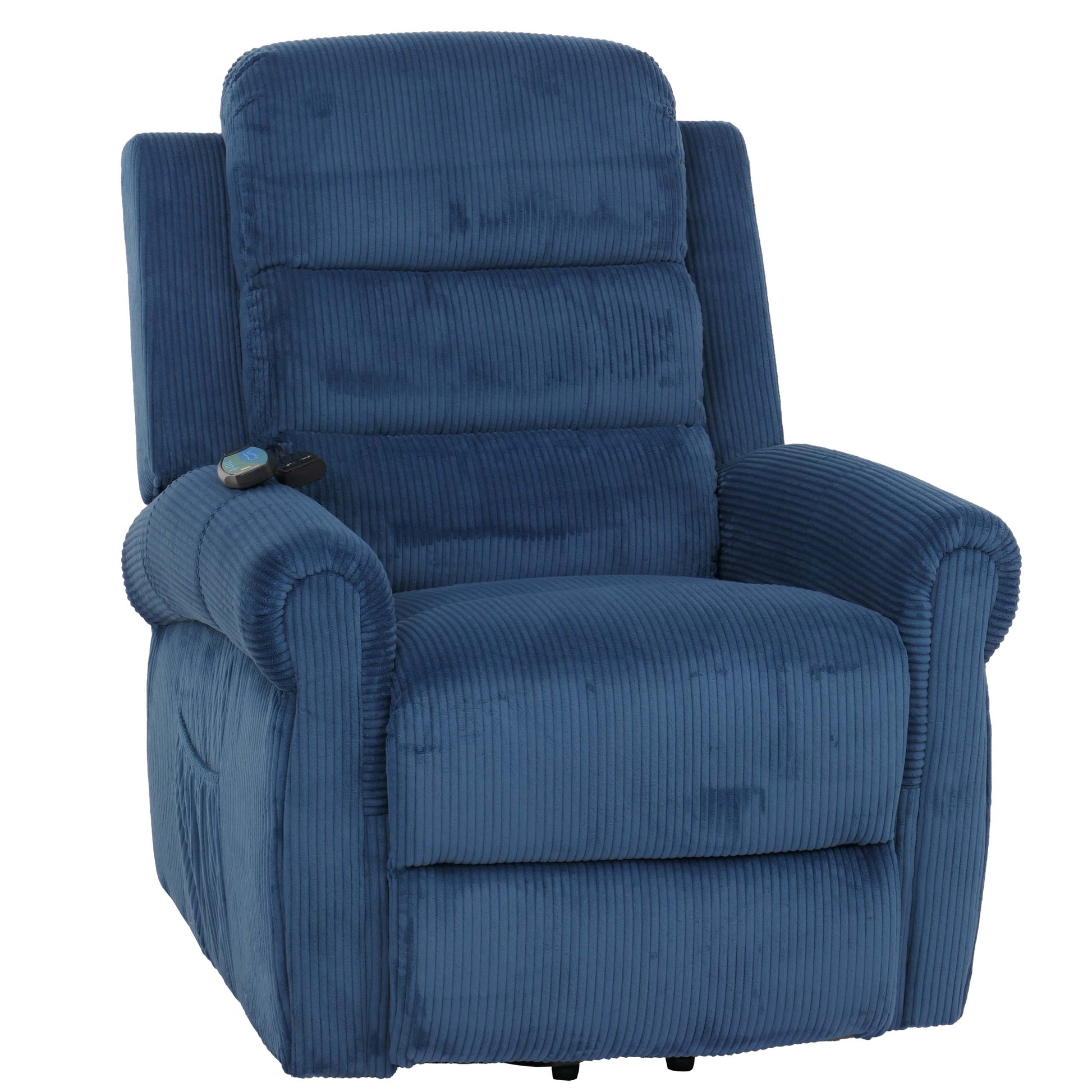 Cosmo Casa - TV-Stoel - Relaxfauteuil met Ligfunctie en Opstahulp - Massage en Verwarming - Snoer Stof - Blauw | Standaard | €1.359,95