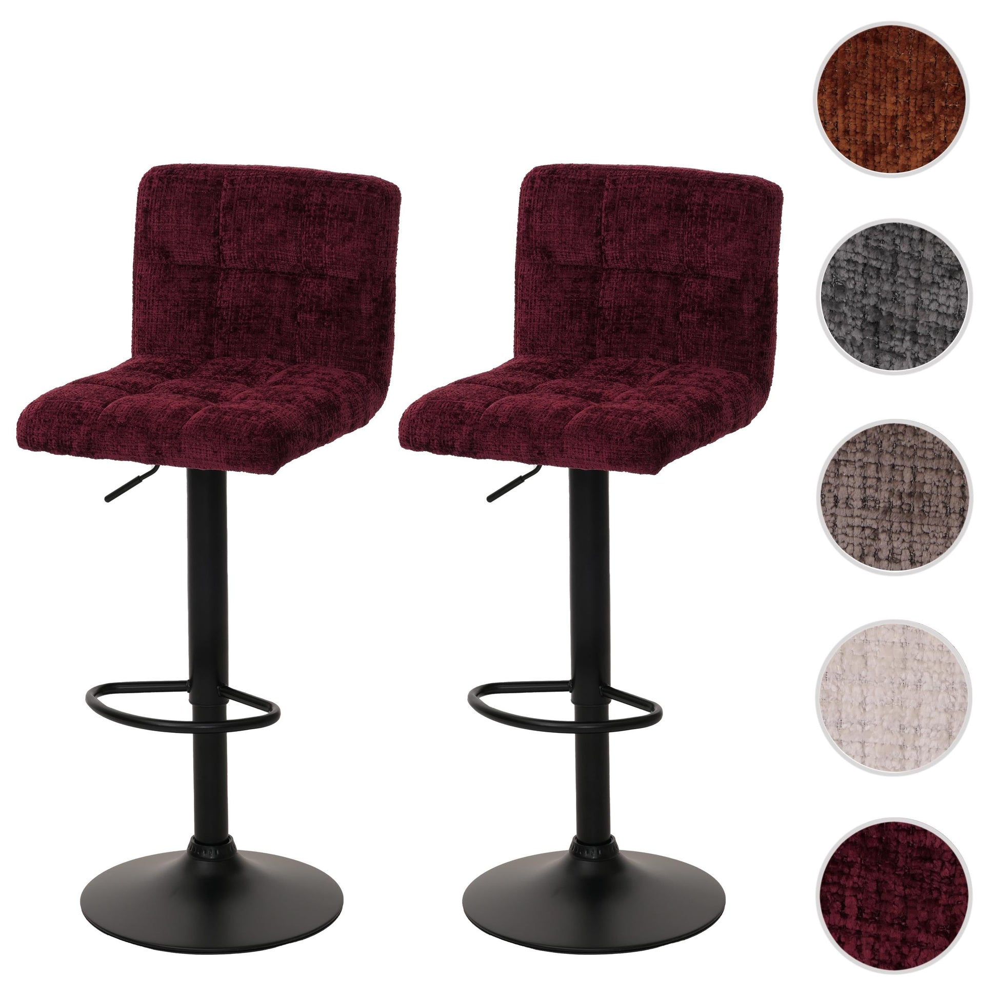 Cosmo Casa - Set van 2 Barkrukken - Barstoel - In Hoogte Verstelbaar & Draaibaar - Chenille Stof - Bordeaux | Standaard | €125,95