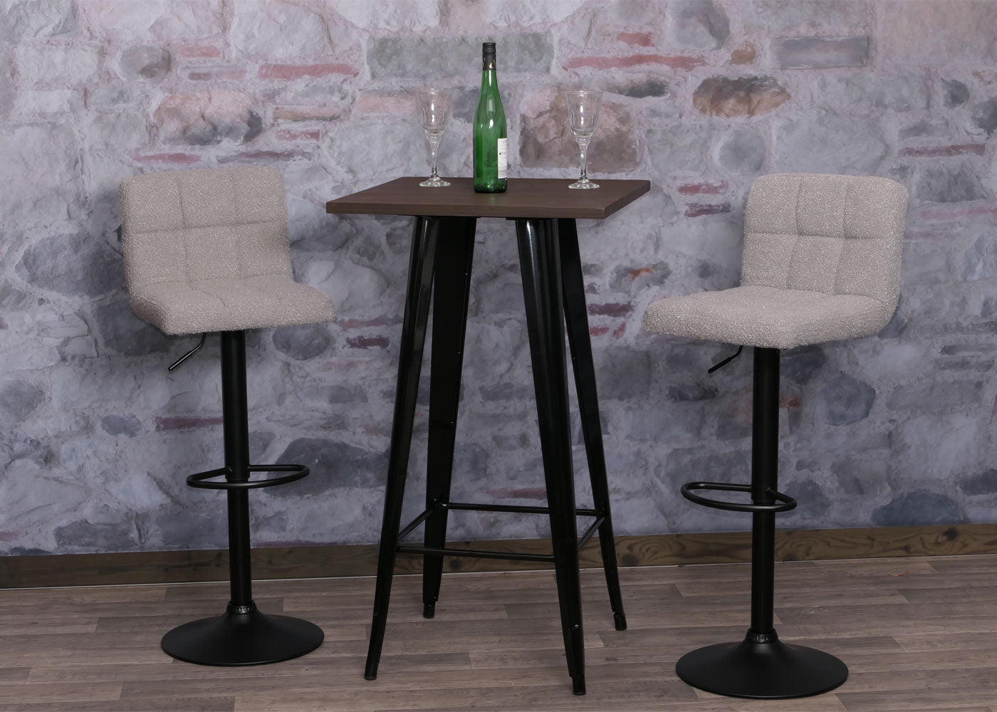 - Traploos in hoogte verstelbaar- FSC-gecertificeerd (N004267)- 360° draaibaar- BSCI sociale normen getest- Inclusief voetsteun- Moderne bouclé stoffen bekleding- Hoge stofkwaliteit 450 g/m�- Comfortabele bekleding- Decoratieve siernaden- Zwart mat frame- Afgeronde hoeken en randen- Maximaal draagve...