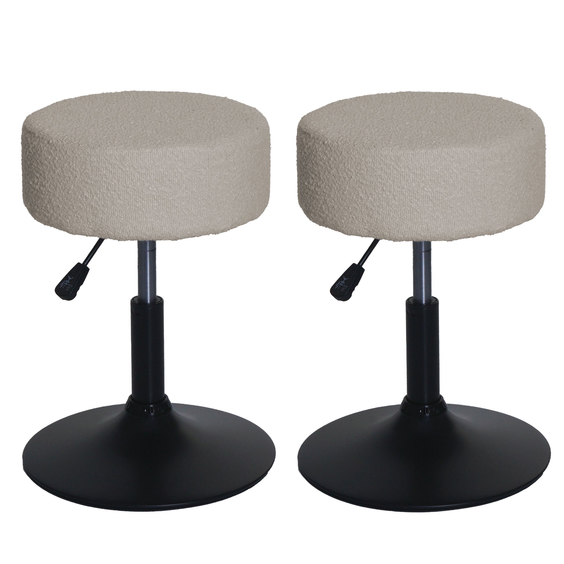 Cosmo Casa - Set van 2 Krukken - Make-up Kruk - In Hoogte Verstelbaar & Draaibaar - Boucle Stof - Beige | Standaard | €79,95