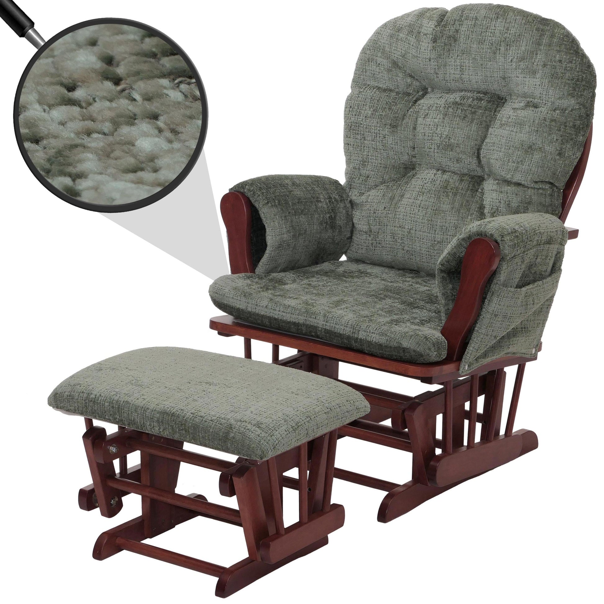 Cosmo Casa - Relaxstoel met Kruk - Schommelstoel - Chenille Stof - Groen - Donker Frame | Standaard | €279,95