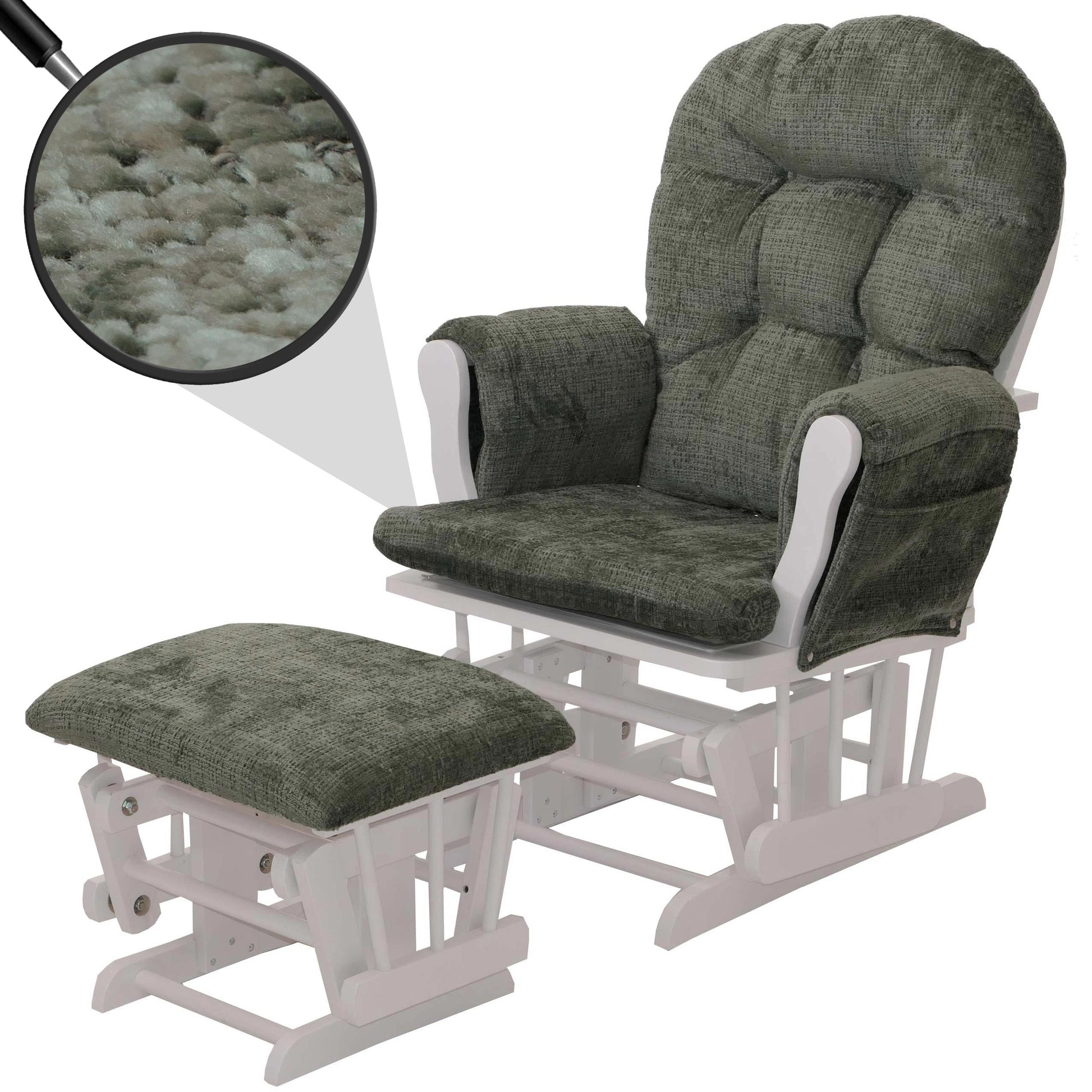 Cosmo Casa - Relaxstoel met Kruk - Schommelstoel - Chenille Stof - Groen - Wit Frame | Standaard | €279,95