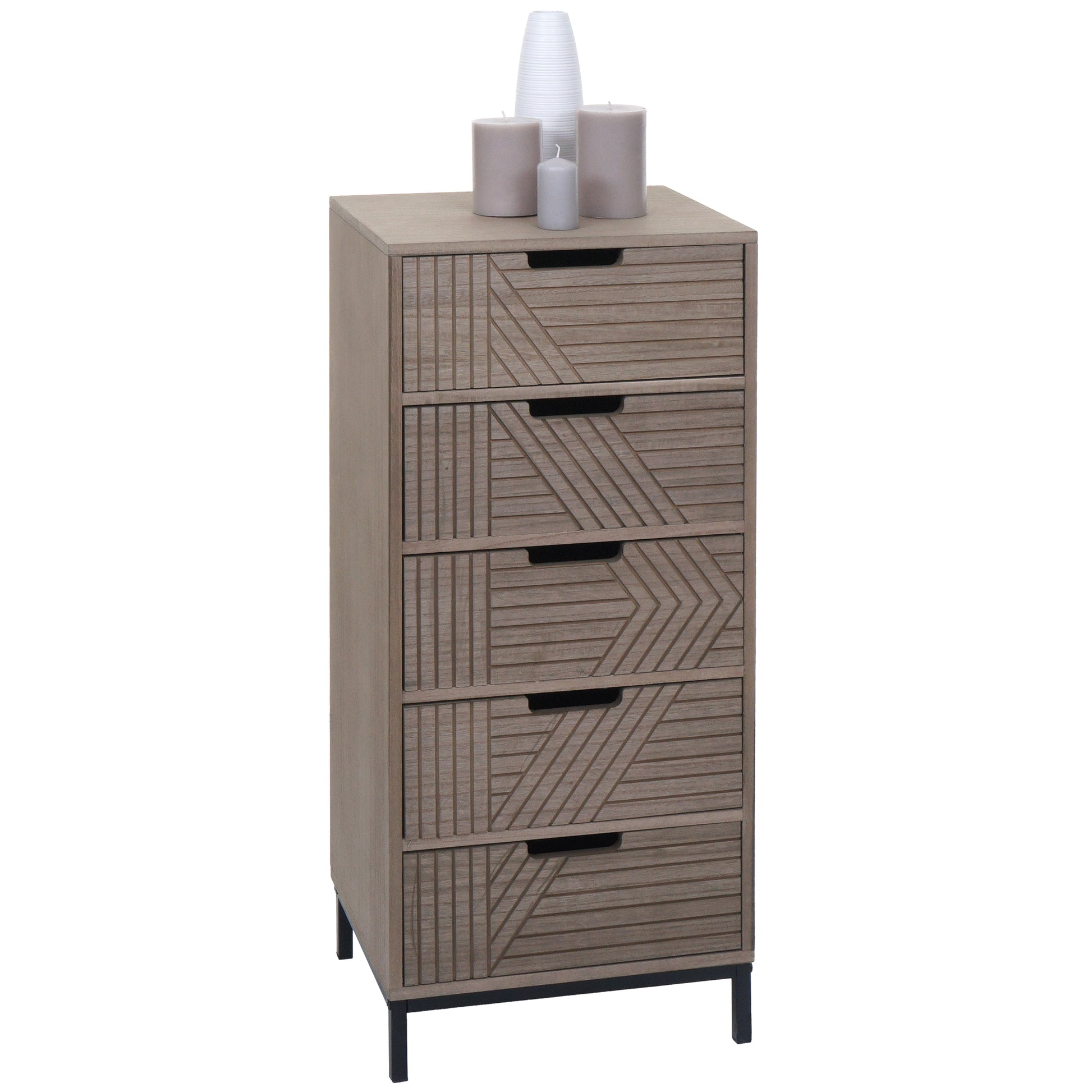Cosmo Casa - Ladenkast - 3D-Design - 5 Laden - Hout en Metaal - 84x35x29cm - Grijsbruin