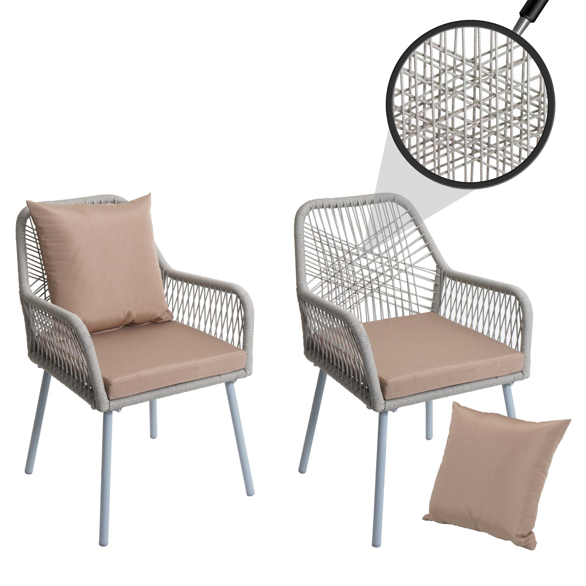 Cosmo Casa - Set van 2 Tuinstoelen - Zit- en Rugkussens - Aluminium - Touwgaas - Lichtgrijs - Taupe Bekleding