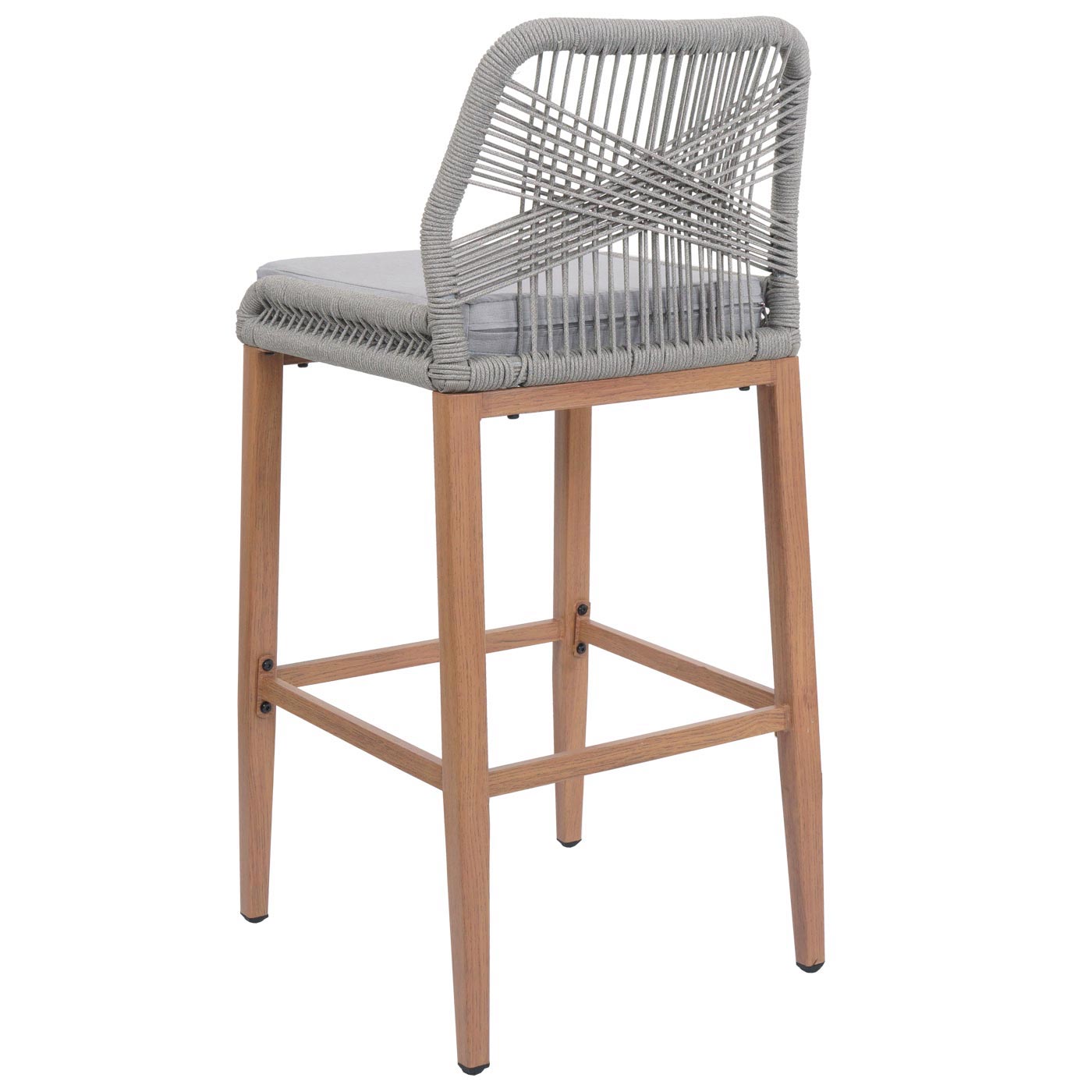 Cosmo Casa - Set van 2 Touw Barkrukken - Buitenzitkussens - Touwgaas - Metaal Houtlook - Lichtgrijs - Lichtgrijze Kussens | Standaard | €209,95