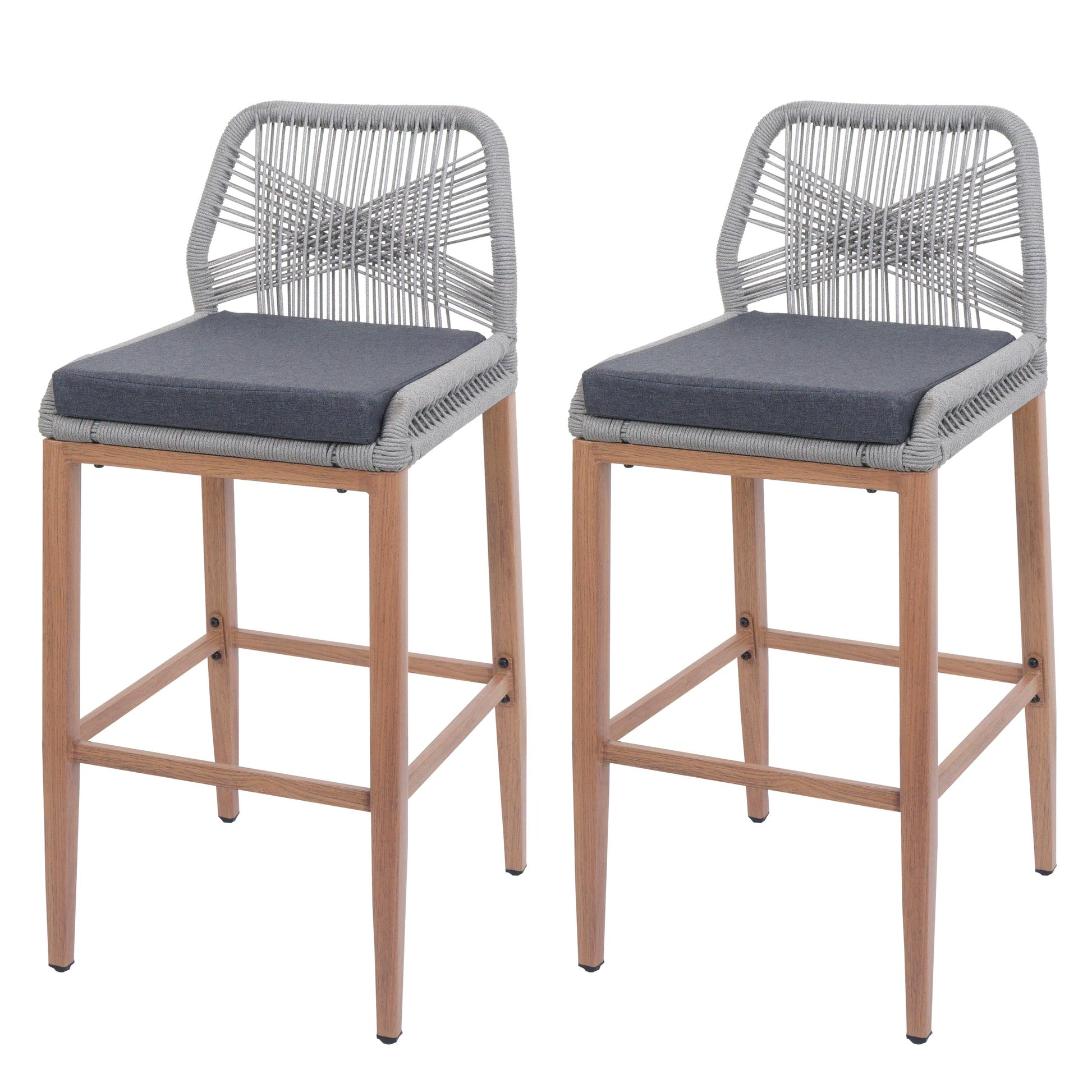 Cosmo Casa - Set van 2 Touw Barkrukken - Buitenzitkussens - Touwgaas - Metaal Houtlook - Lichtgrijs - Donkergrijze Kussens | Standaard | €209,95