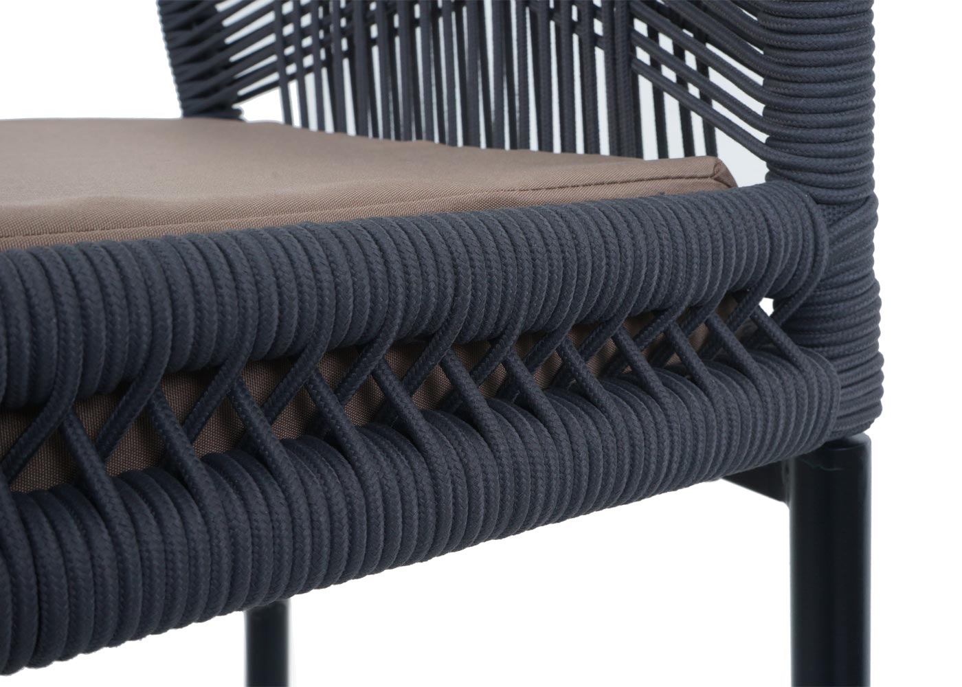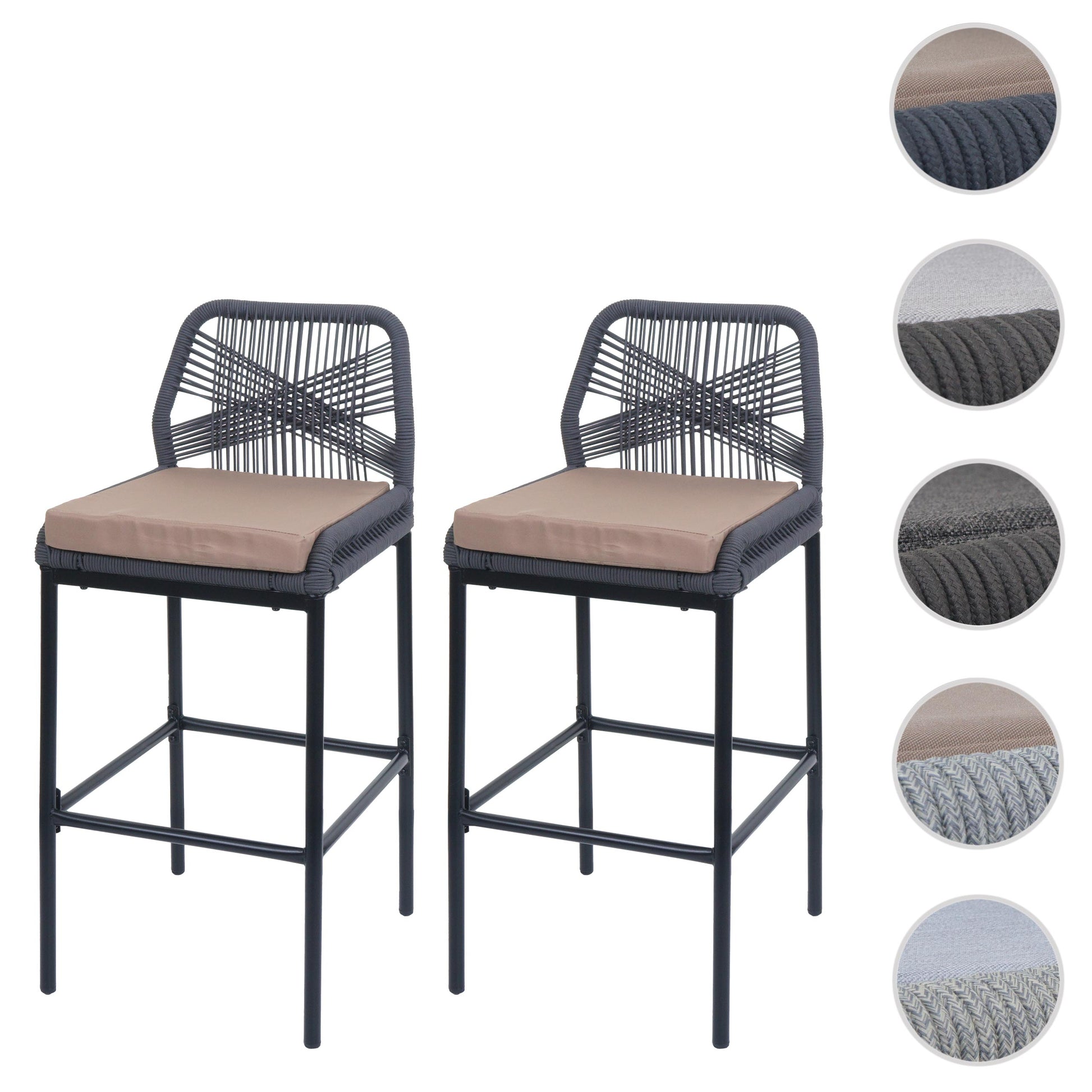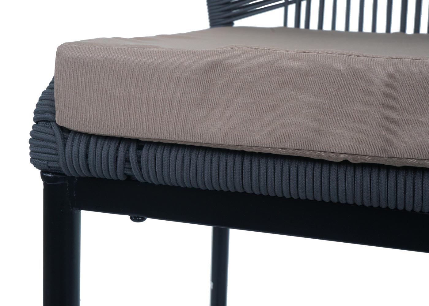 Cosmo Casa - Set van 2 Touw Barkrukken - Buitenzitkussens - Metaal - Touwgaas - Antraciet - Taupe Kussens | Standaard | €149,95
