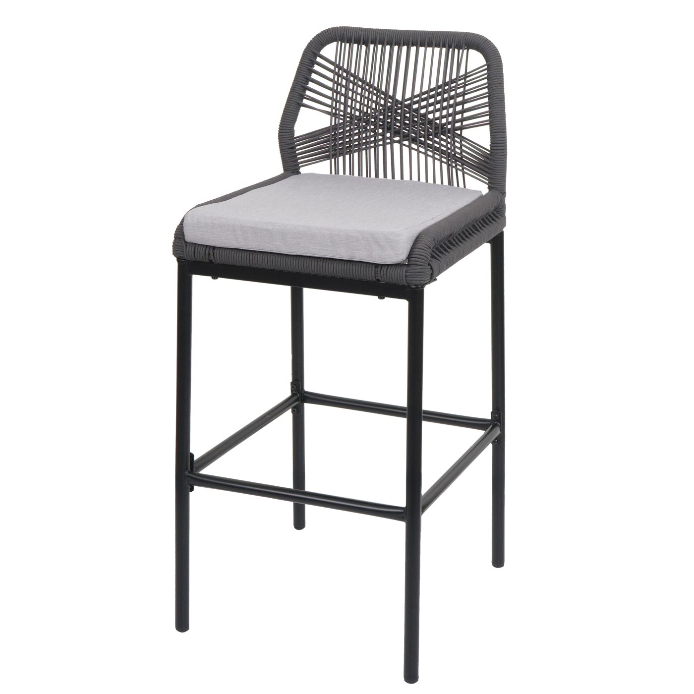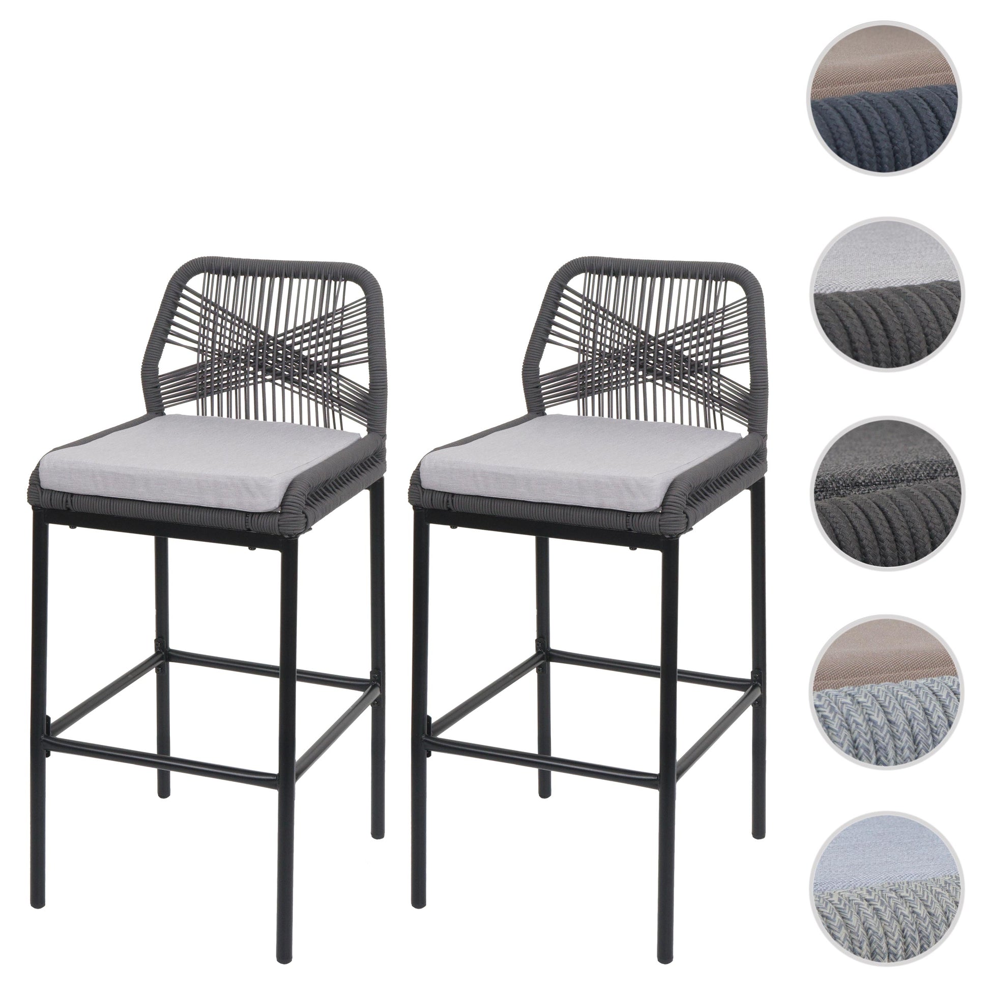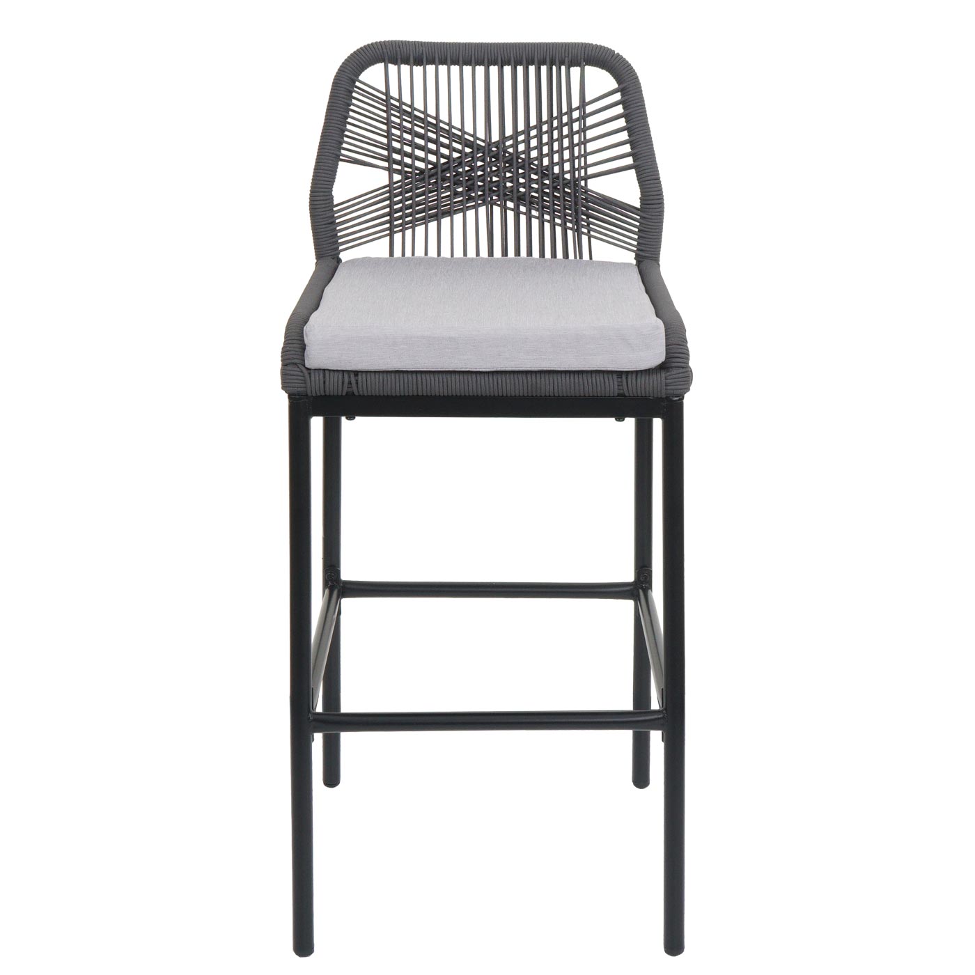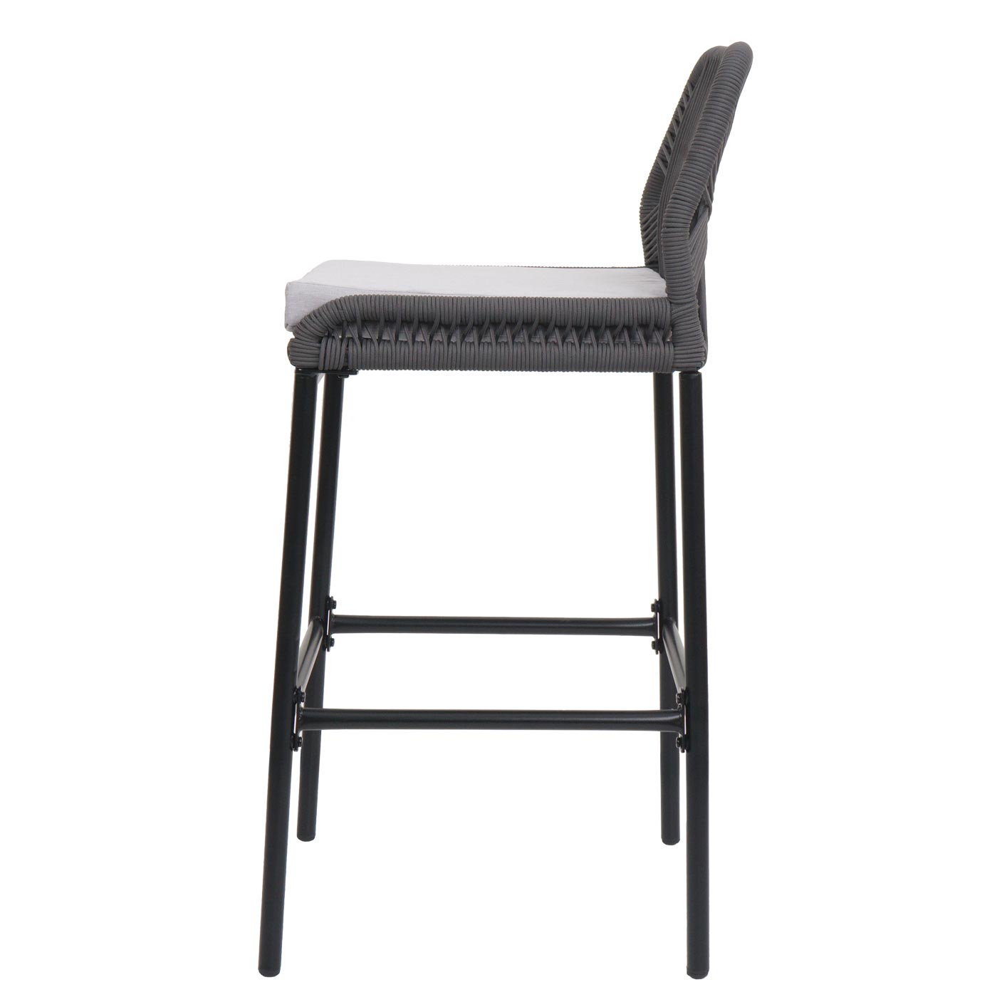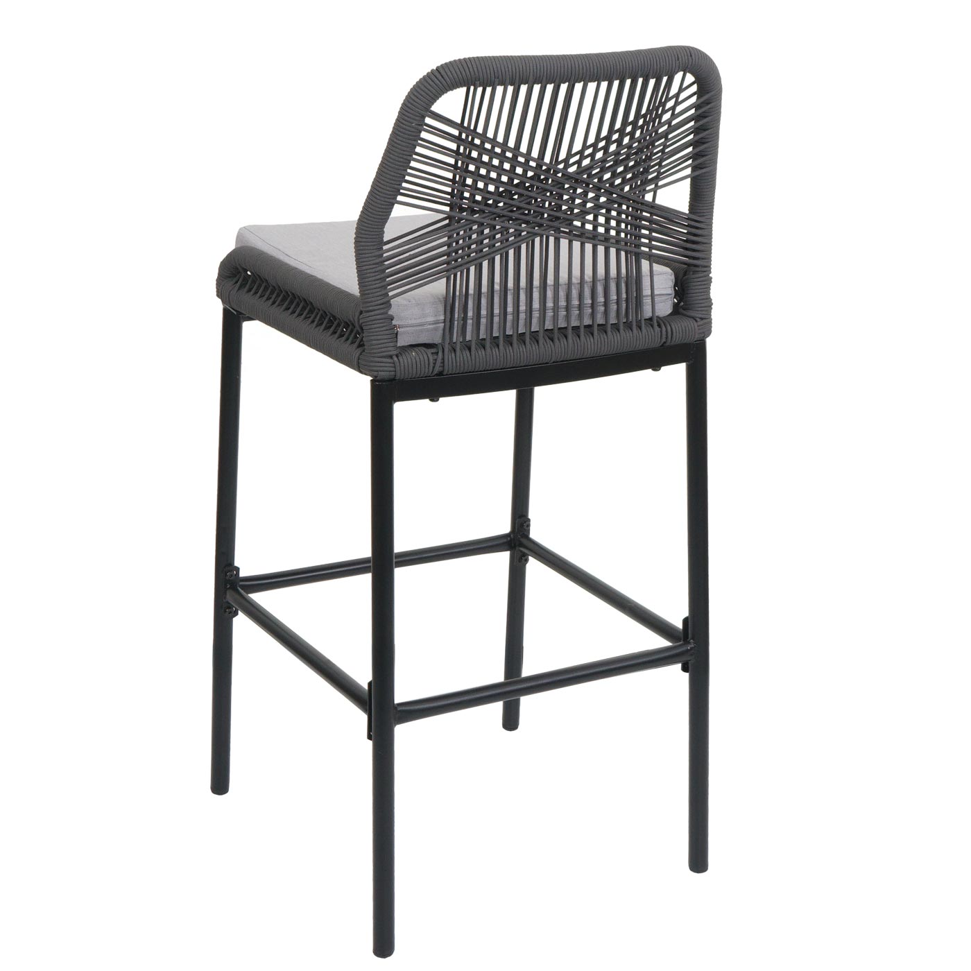 Cosmo Casa - Set van 2 Touw Barkrukken - Buitenzitkussens - Touwgaas - Metaal - Antraciet - Lichtgrijze Kussens | Standaard | €135,95