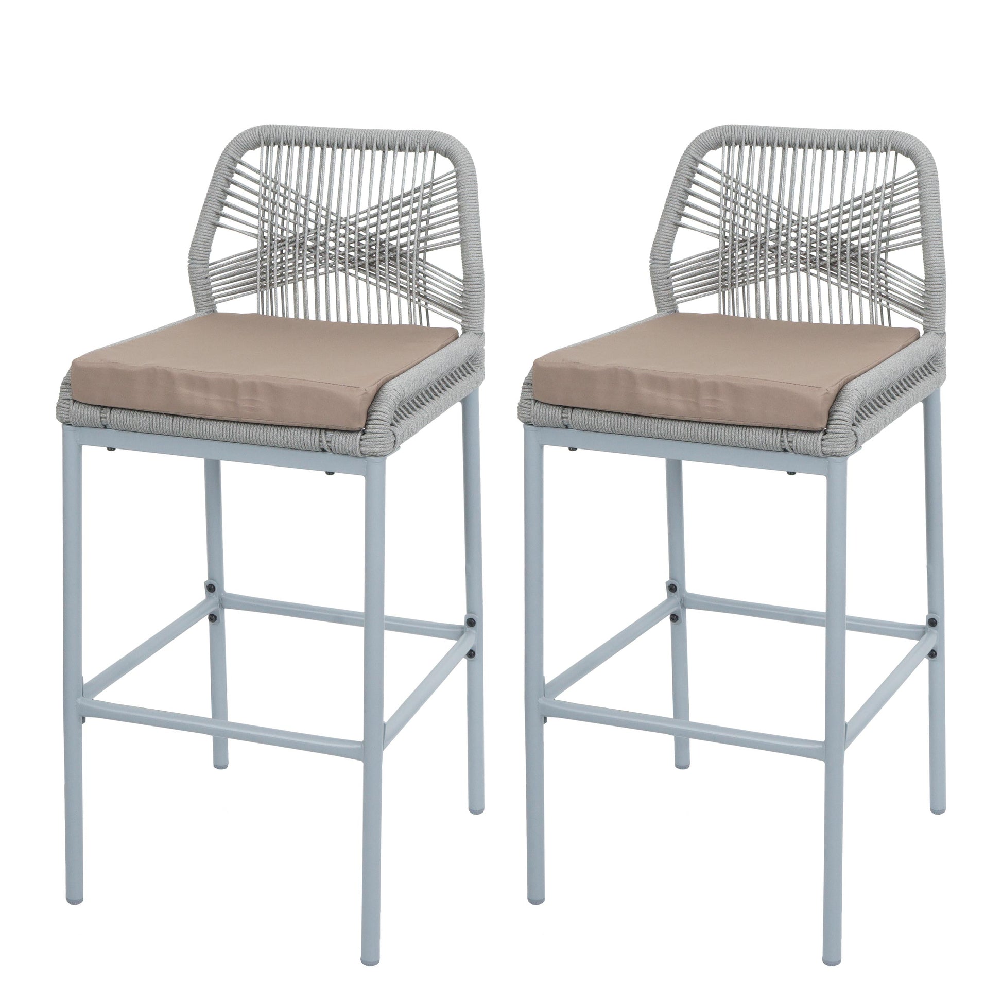 Cosmo Casa - Set van 2 Barkrukken - Touwgaas - Metaal Houtlook - Antraciet - Taupe Kussens | Standaard | €135,95