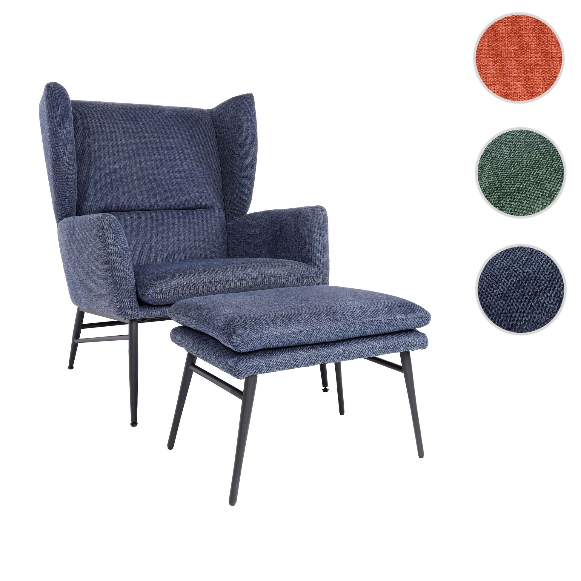Cosmo Casa - Loungestoel met poef - Gestoffeerd - Textiel - Blauw | Standaard | ā¬1.209,95
