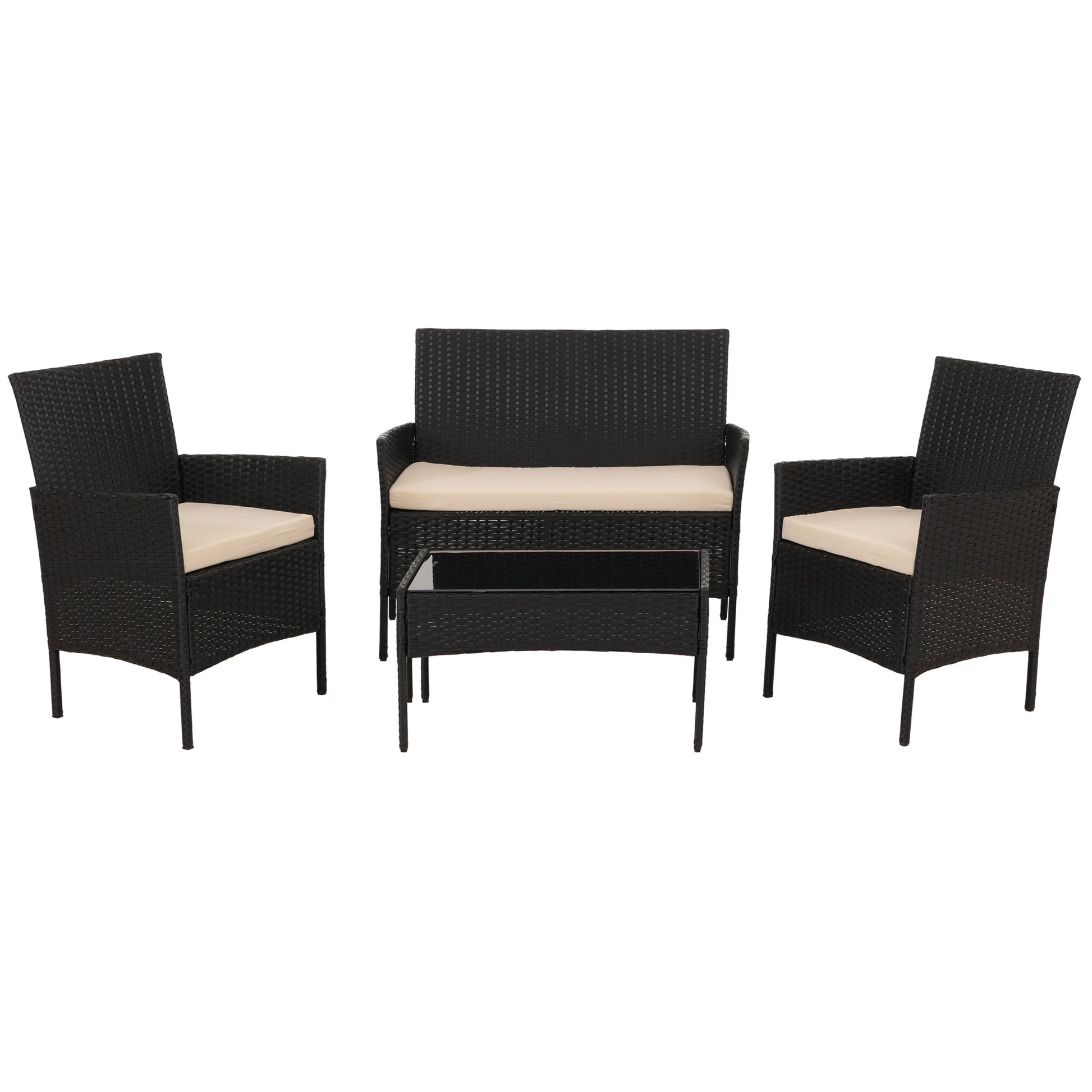 Cosmo Casa - Poly Rattan Tuinset - Metalen Frame met Glastextiel - Antraciet - Crème Kussens | Standaard | €209,95