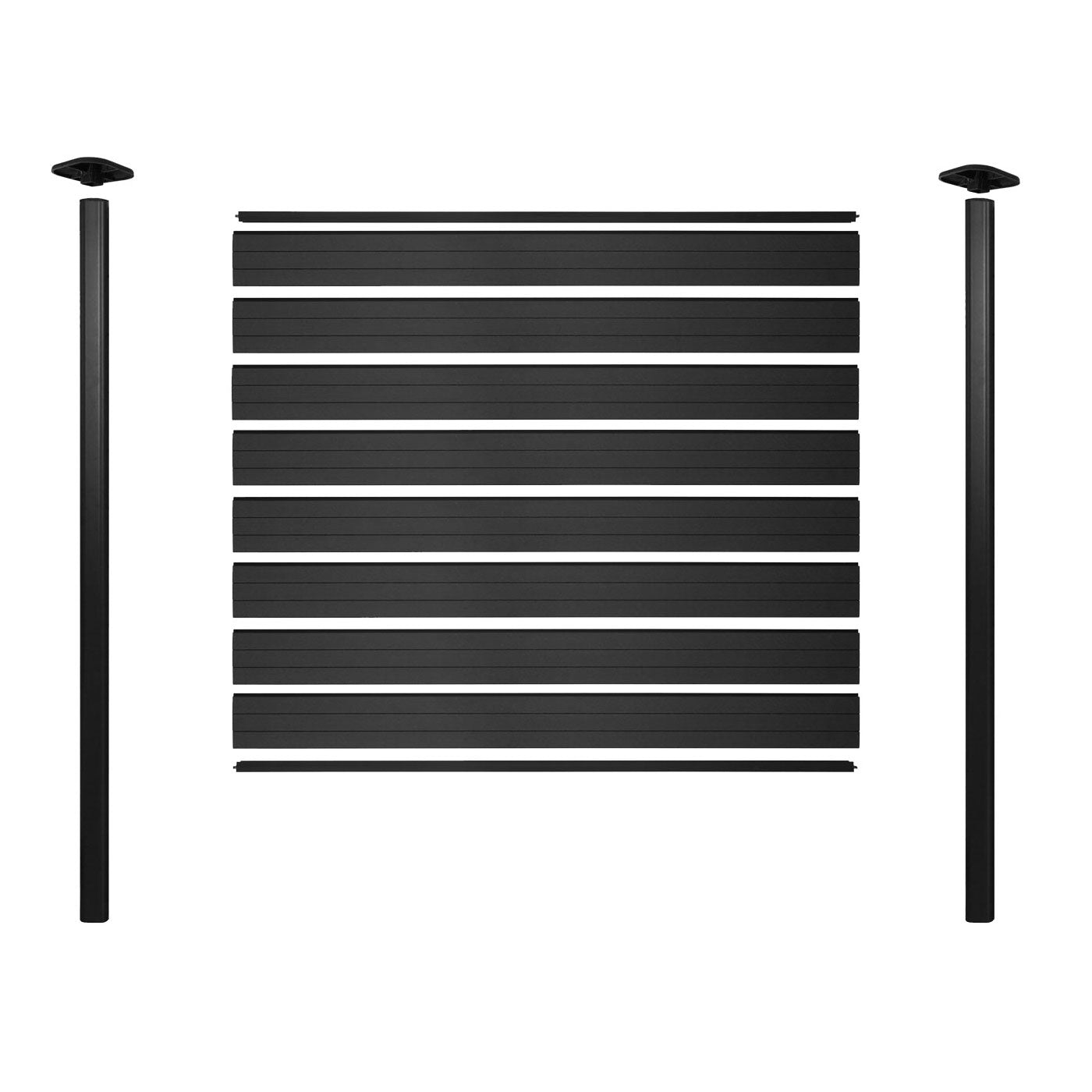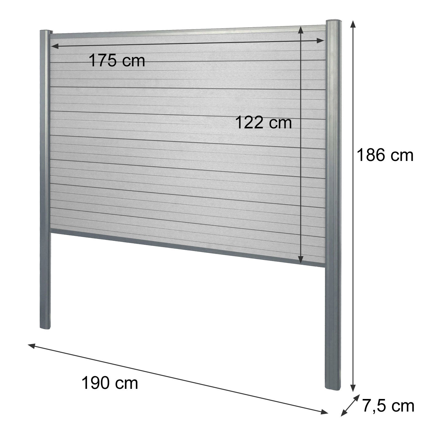 Cosmo Casa - WPC Privacyscherm Sarthe - Hekwerk Windscherm & Basiselement - Aluminium Palen om in Beton te Plaatsen - Antraciet - 1,90 m | Standaard | €729,95