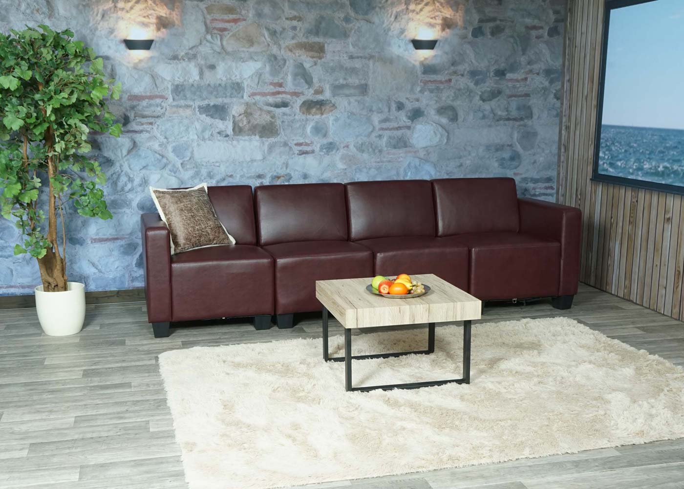 Cosmo Casa - 4-zitsbank - Modulair ontwerp - Kunstleer - Roodbruin