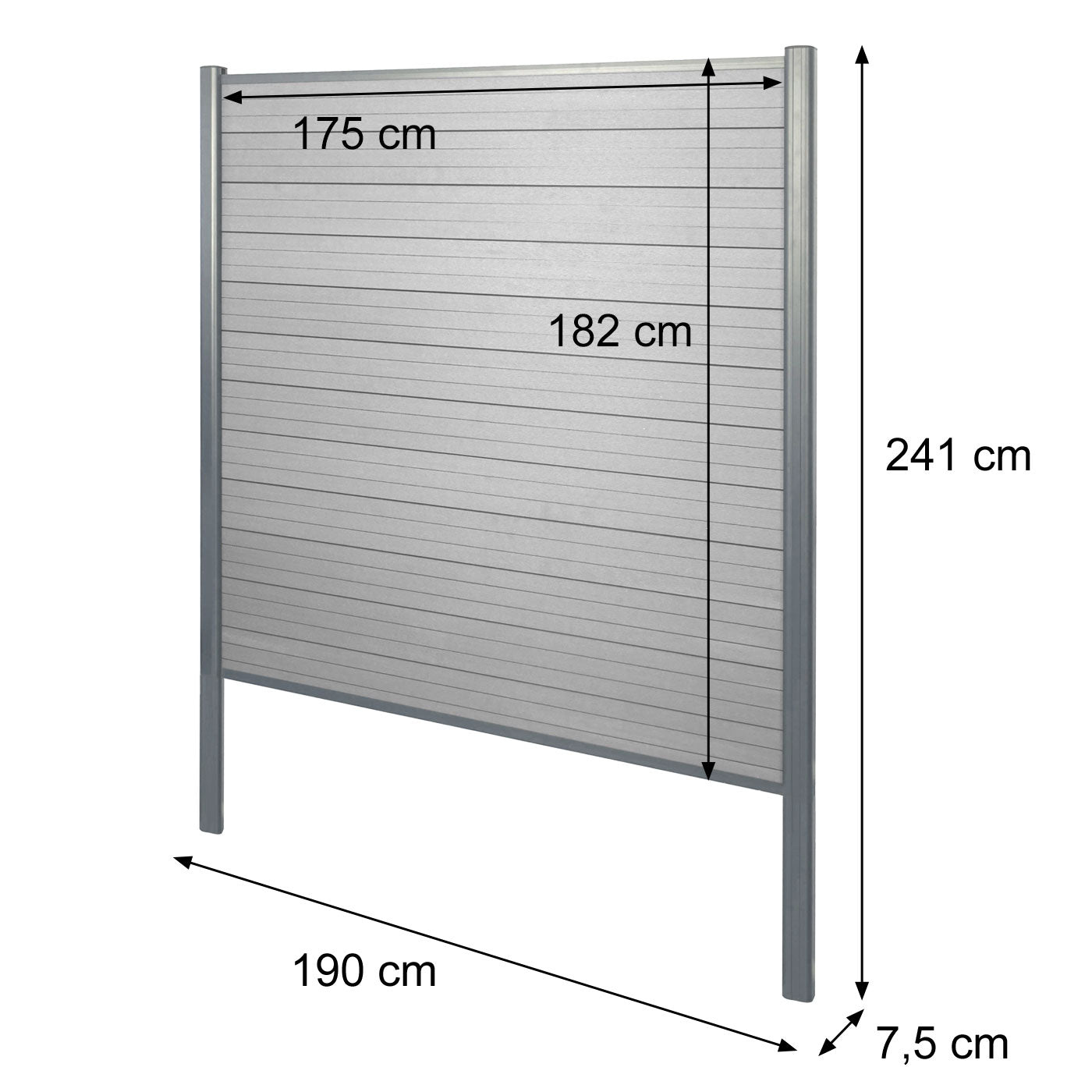 Cosmo Casa - WPC Privacyscherm Sarthe - Windscherm & Basiselement - Aluminium Palen om in Beton te Plaatsen - Antraciet - 1,90 m | Standaard | €1.549,95