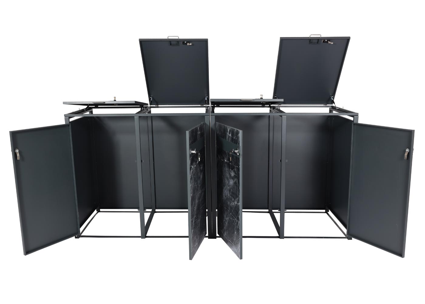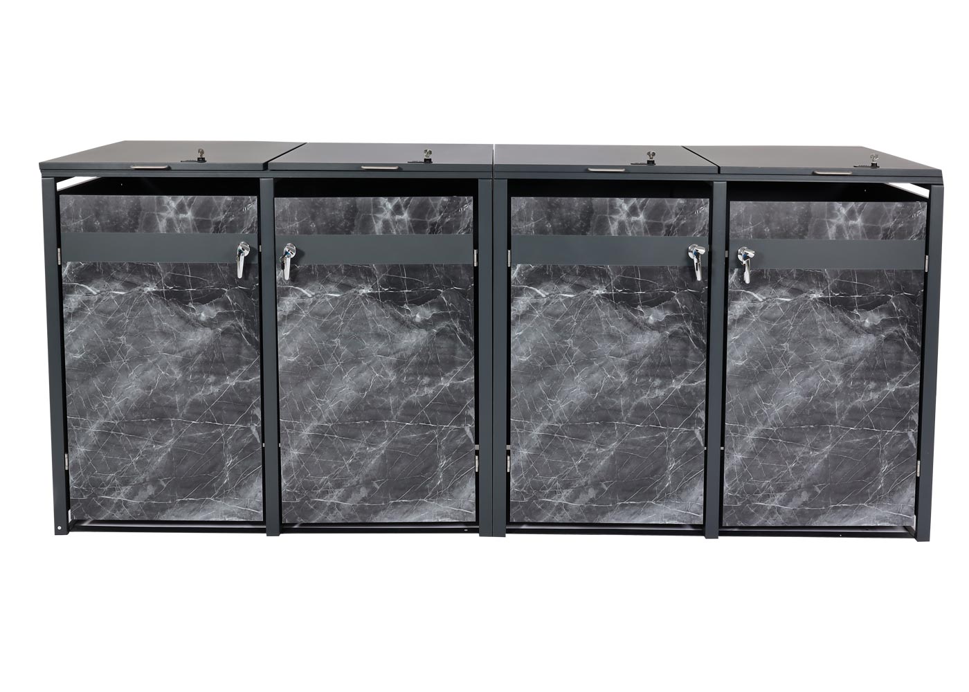 - Voor vier vuilnisbakken met een inhoud van 80 tot 240 liter- BSCI sociale normen getest- Robuuster door hoger gewicht dan veel concurrenten- Materiaaldikte staal: 0,8 mm (en dus dikker dan sommige concurrenten)- Roest- en UV-bestendig- Uitbreidbaar met andere modellen uit de J82-serie- Deksel kan...