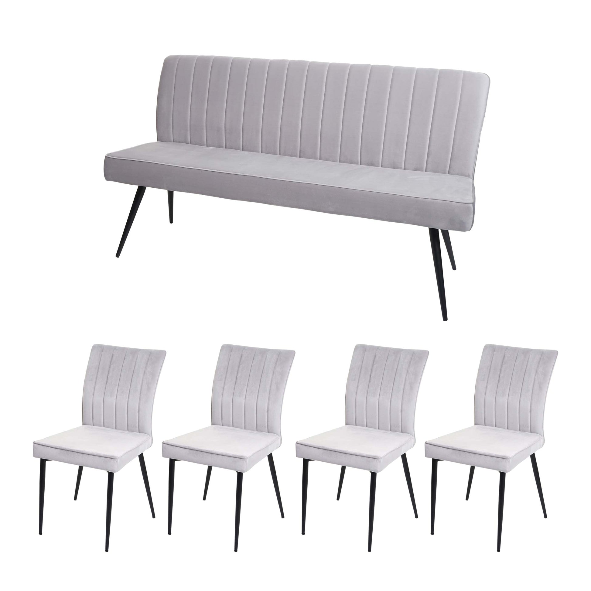 - Leveringsomvang 4x eetkamerstoelen en 1x 3-zitsbank- Comfortabele vorm- Inclusief vloerbeschermers- Ronde zitting en rugleuning met decoratieve stiksels- Klassieke stijl- Max. draagvermogen per stoel: 140 kg- Eenvoudig te monteren- Deze chique set van vier stoelen en een bank in een modern design...
