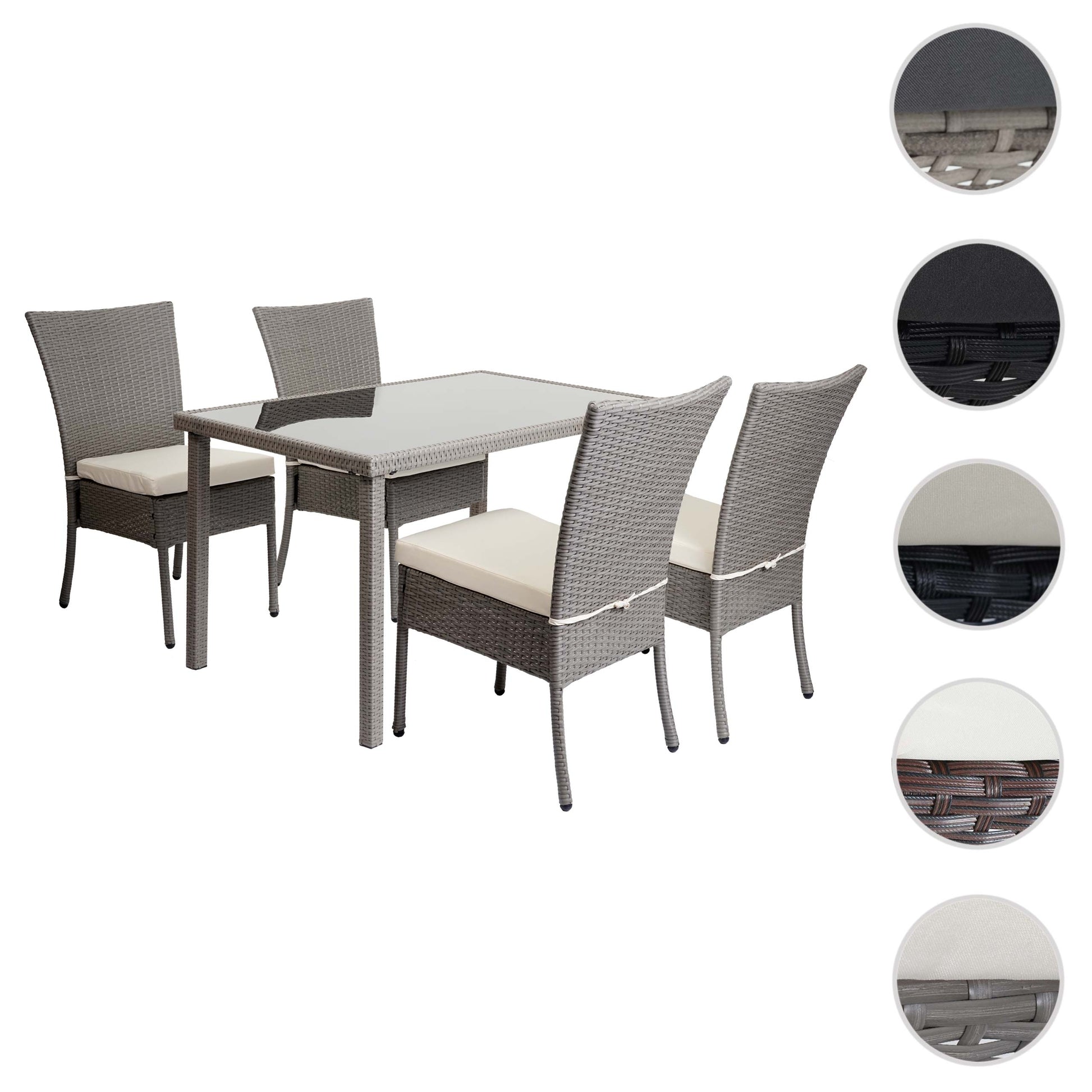 - Leveringsomvang: 4x stoelen inclusief kussens, 1x tafel- Stapelbare stoelen- Waterafstotende hoezen- Hoezen met ritssluiting- Heeft geen neiging tot vezels- Doorlopend vlechtwerk in plaats van spuitgieten- Ruim tafelblad van glas- Max. draagvermogen per stoel: 150 kg- Levering vindt plaats zonder...