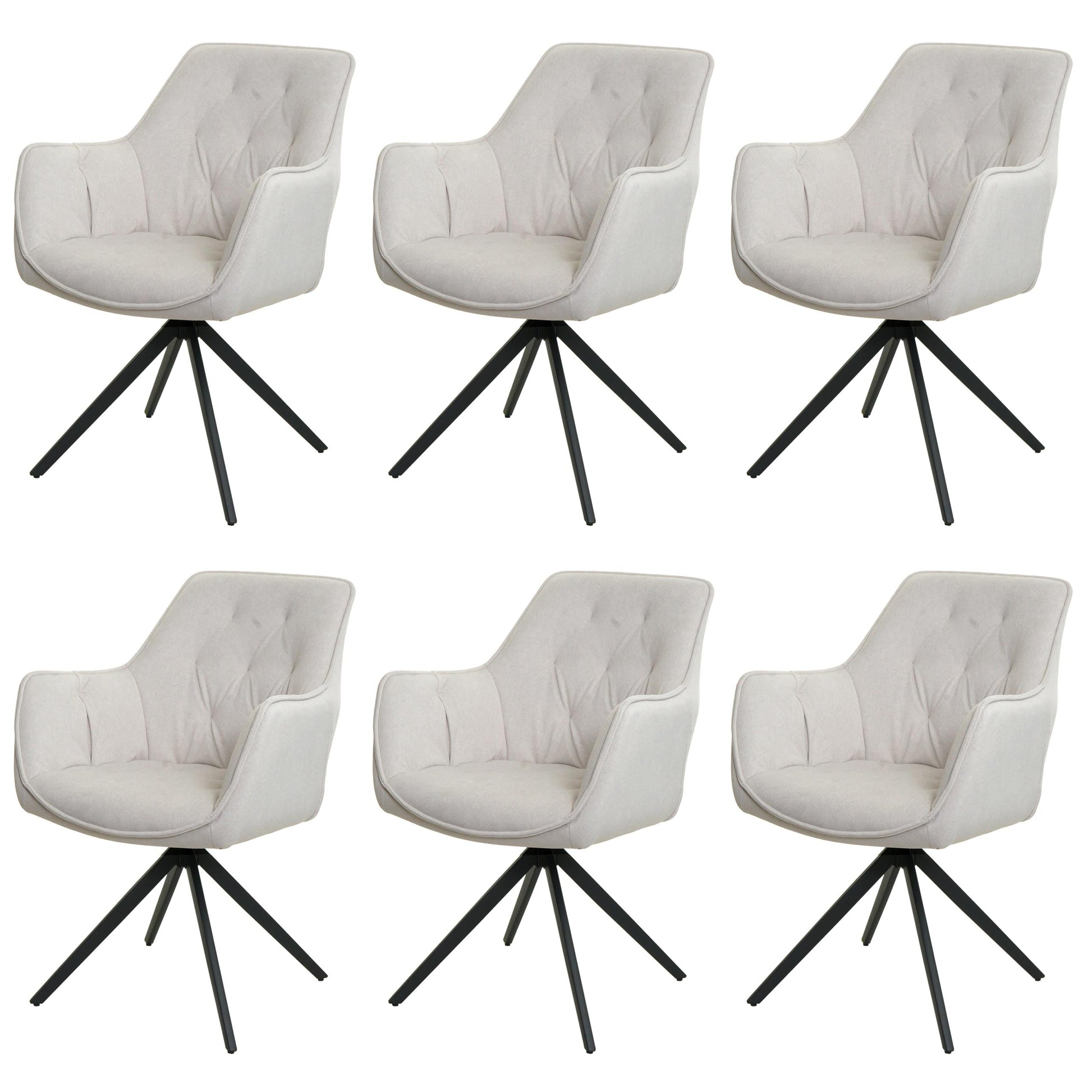 - Leveringsomvang: 6x eetkamerstoel- 180° draaibaar - Met automatische stand (draait automatisch terug naar de uitgangspositie)- Hoge stofkwaliteit 440g/m�- Aangenaam zachte vulling van 7 cm - In hoogte verstelbare vloerbeschermers- Ruime zitting met armleuningen - Stabiel stalen frame- Elegante, ro...