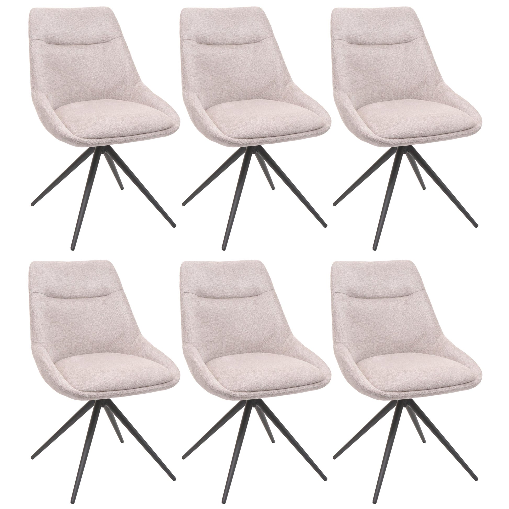 Cosmo Casa - Set van 6 Eetkamerstoelen - Draaibare Keukenfauteuils - Automatische Positionering - Metaal & Stoftextiel - Crème-Beige | Standaard | €1.679,95