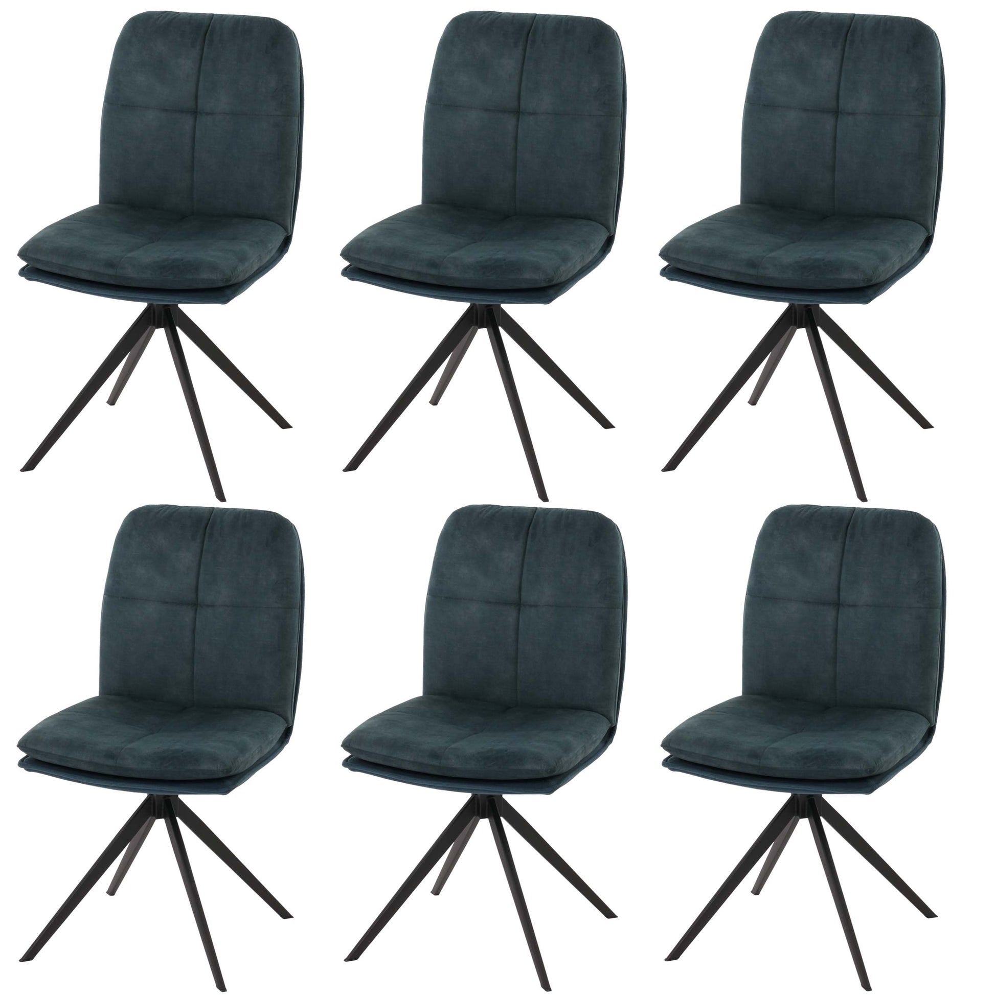 Cosmo Casa - Set van 6 Eetkamerstoelen - Keukenstoel - Fauteuil - Draaibaar Automatische Positie - Metaal - Stof - Blauw | Standaard | €1.089,95