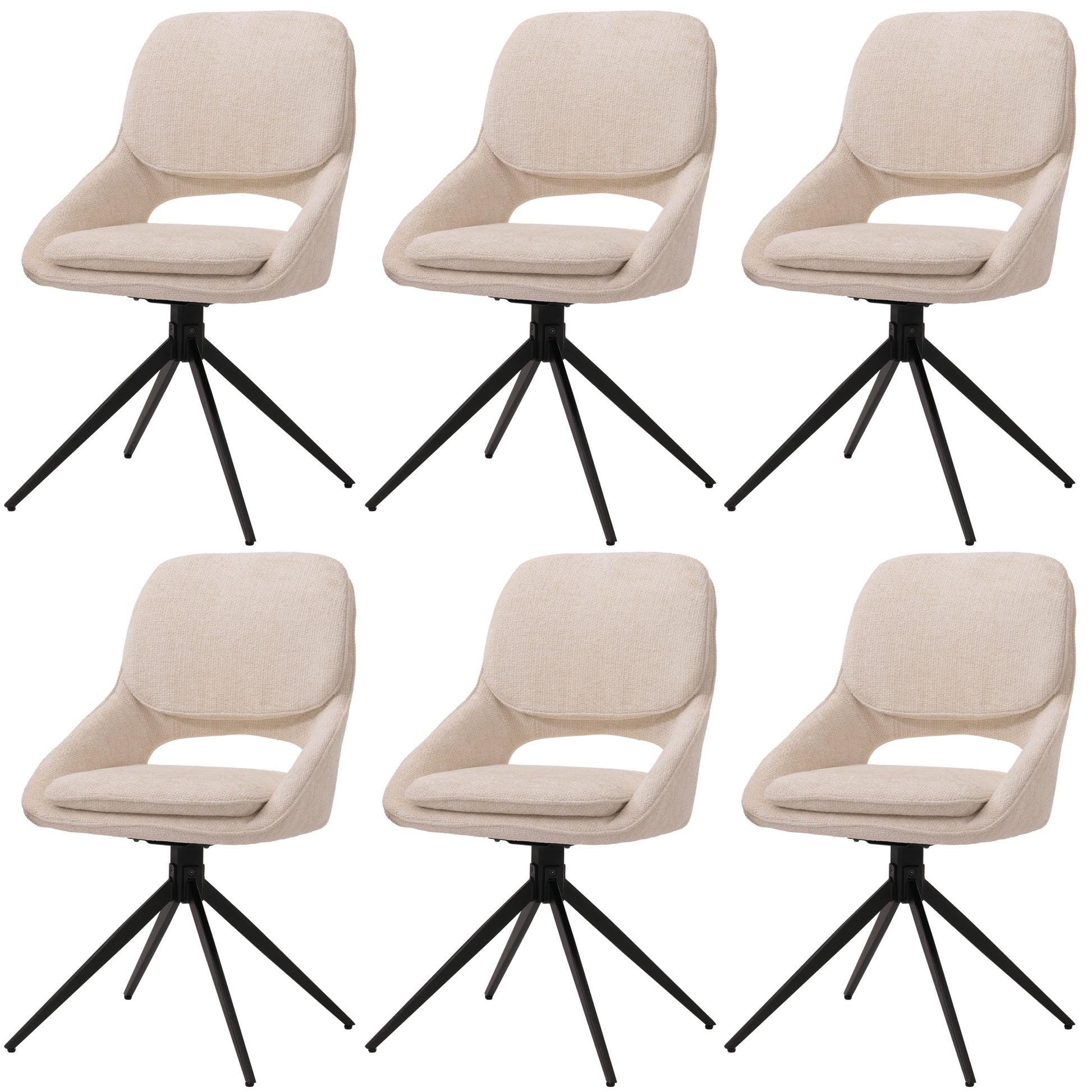 Cosmo Casa - Set van 6 Eetkamerstoelen - Keukenstoel - Draaibaar Auto-Return - Chenille Stof - Crème-Beige | Standaard | €1.059,95