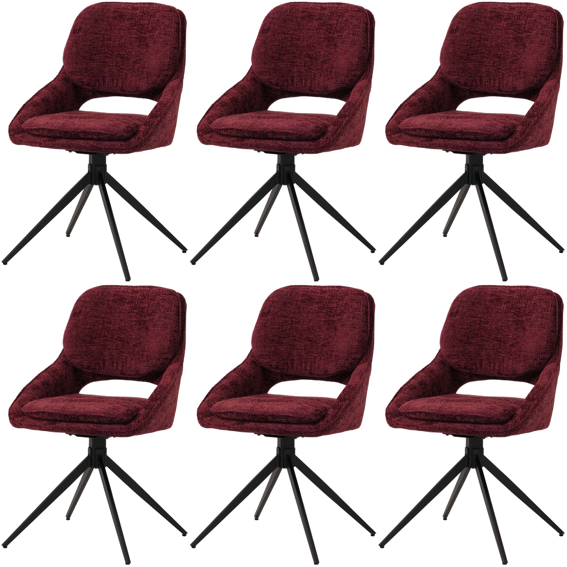 Cosmo Casa - Set van 6 Eetkamerstoelen - Keukenstoel - Draaibaar Auto-Return - Chenille Stof - Bordeaux | Standaard | €929,95