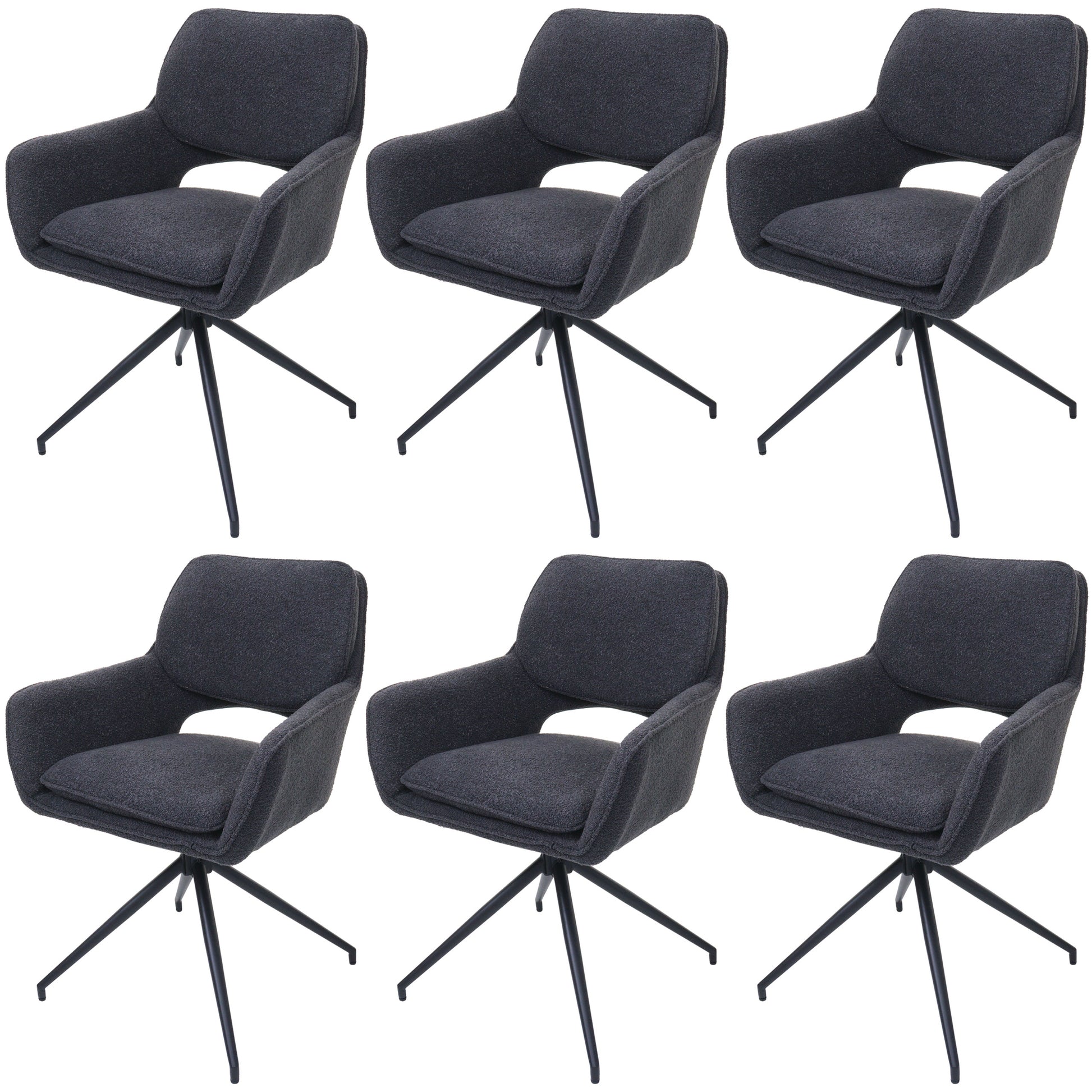 Cosmo Casa - Set van 6 Eetkamerstoelen - Keukenstoel - Draaibaar met Auto-Return - Boucle Stof - Donkergrijs | Standaard | €1.459,95