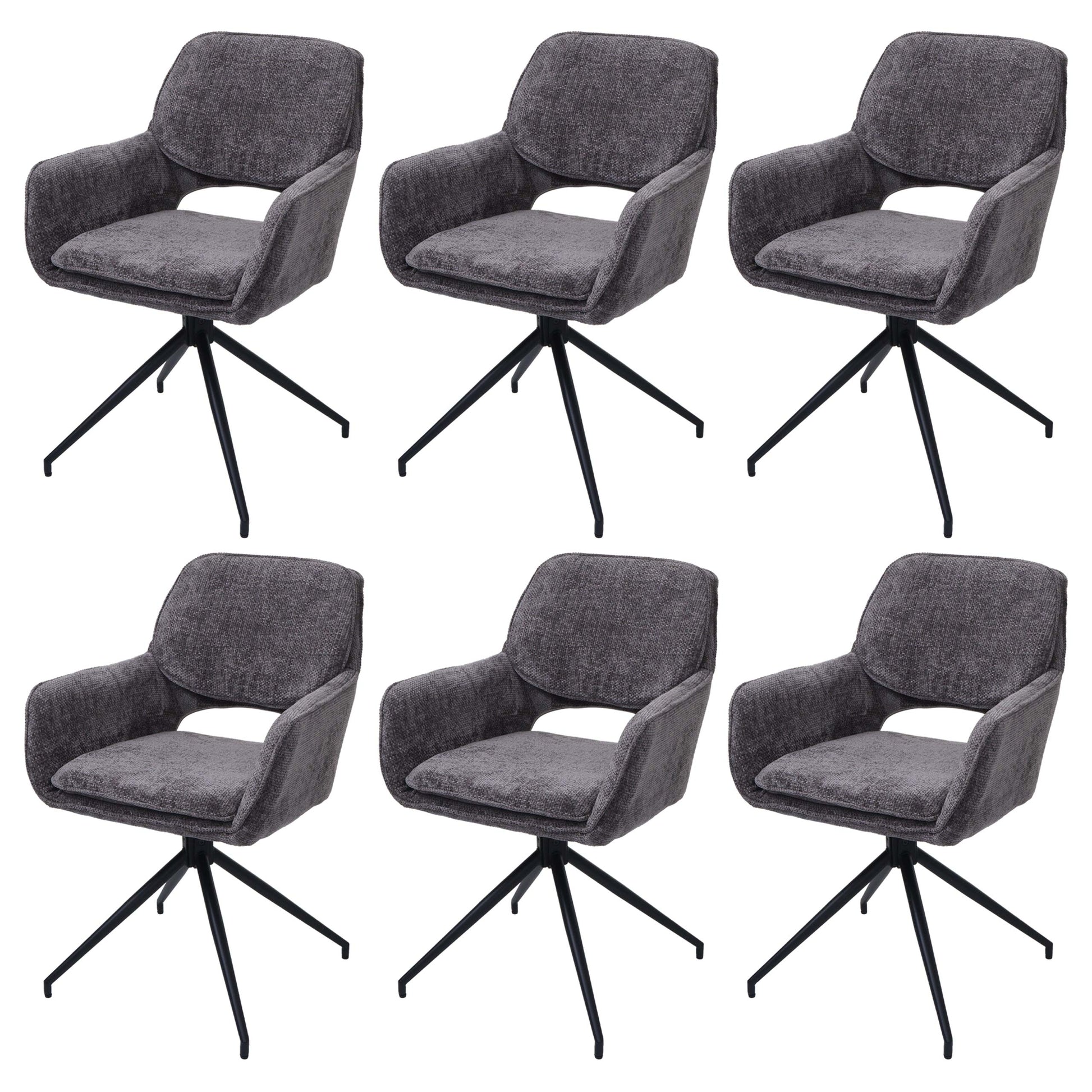 Cosmo Casa - Set van 6 Eetkamerstoelen - Keukenstoel - Draaibaar met Auto-Return - Chenille Stof - Donkergrijs | Standaard | €1.549,95