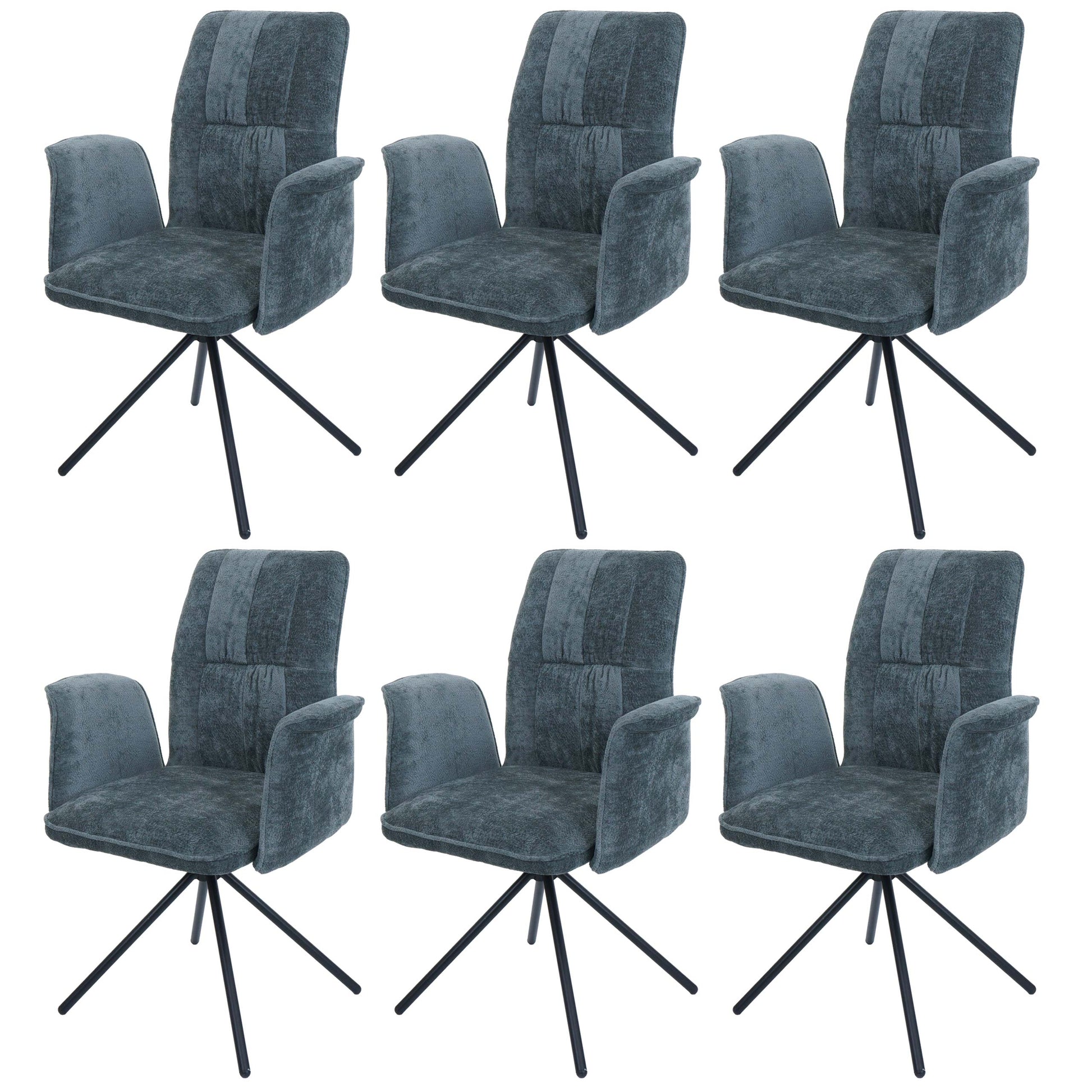 - Leveringsomvang: 6x eetkamerstoel- Met armleuningen- Automatische positionering (draait automatisch terug naar de uitgangspositie)- Hoge stofkwaliteit 340 g/m�- 180° draaibaar- �KO-TEX Standard 100 getest door Swiss Textile Testing Institute (SH015 129432)- Moderne chenille stoffen bekleding- Aang...