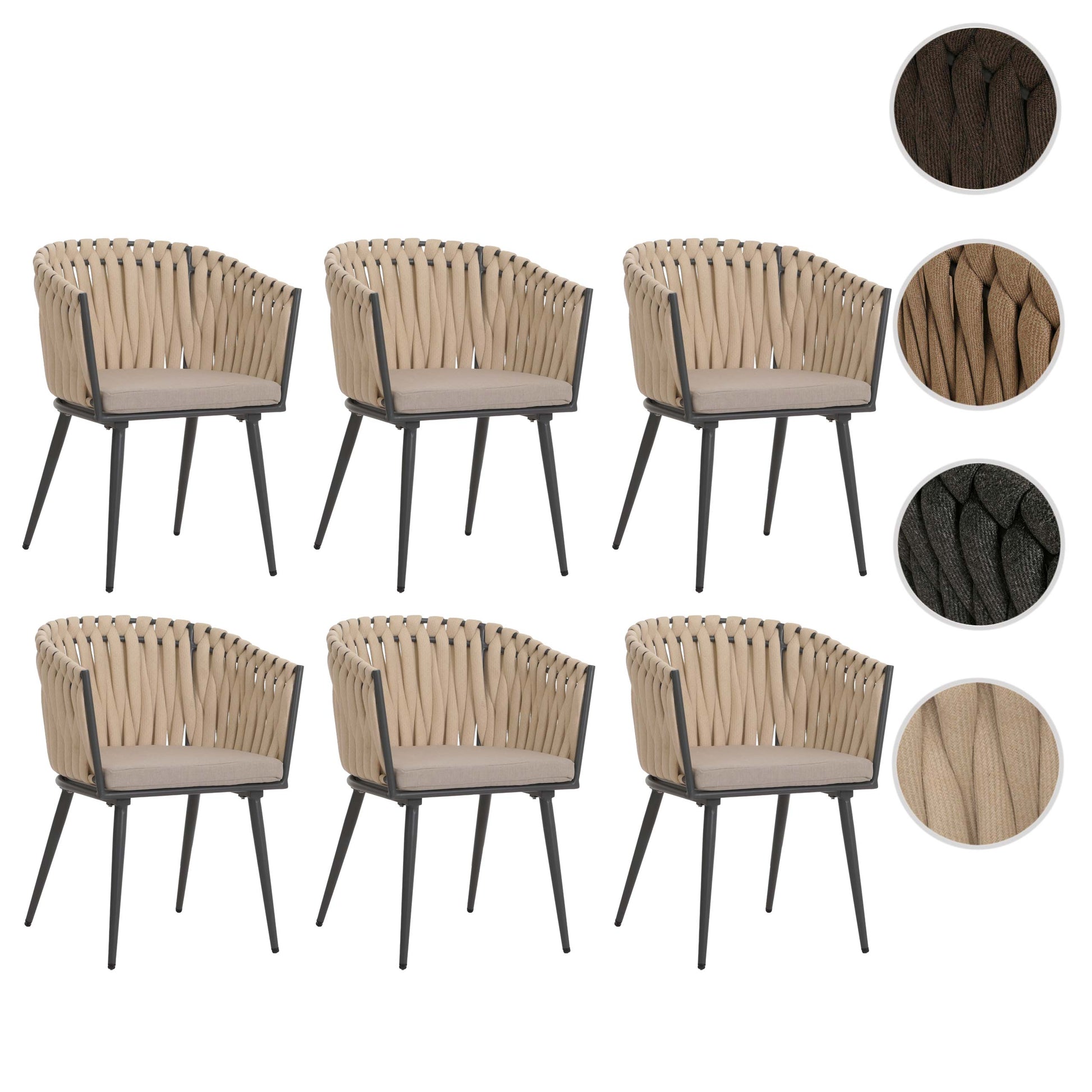 Cosmo Casa - Set van 6 Eetkamerstoelen - Binnenstoelen met Armleuning - Aluminium Frame - Olefin Touwgaas - Crème Kussen - Lichtbruin | Standaard | €1.379,95