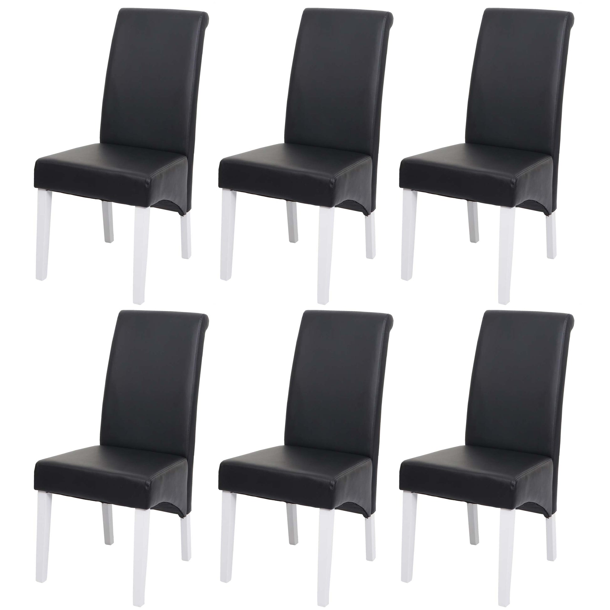 Cosmo Casa - Set van 6 Eetkamerstoelen - Witte poten - Leer - Zwart | Standaard | ā¬829,95