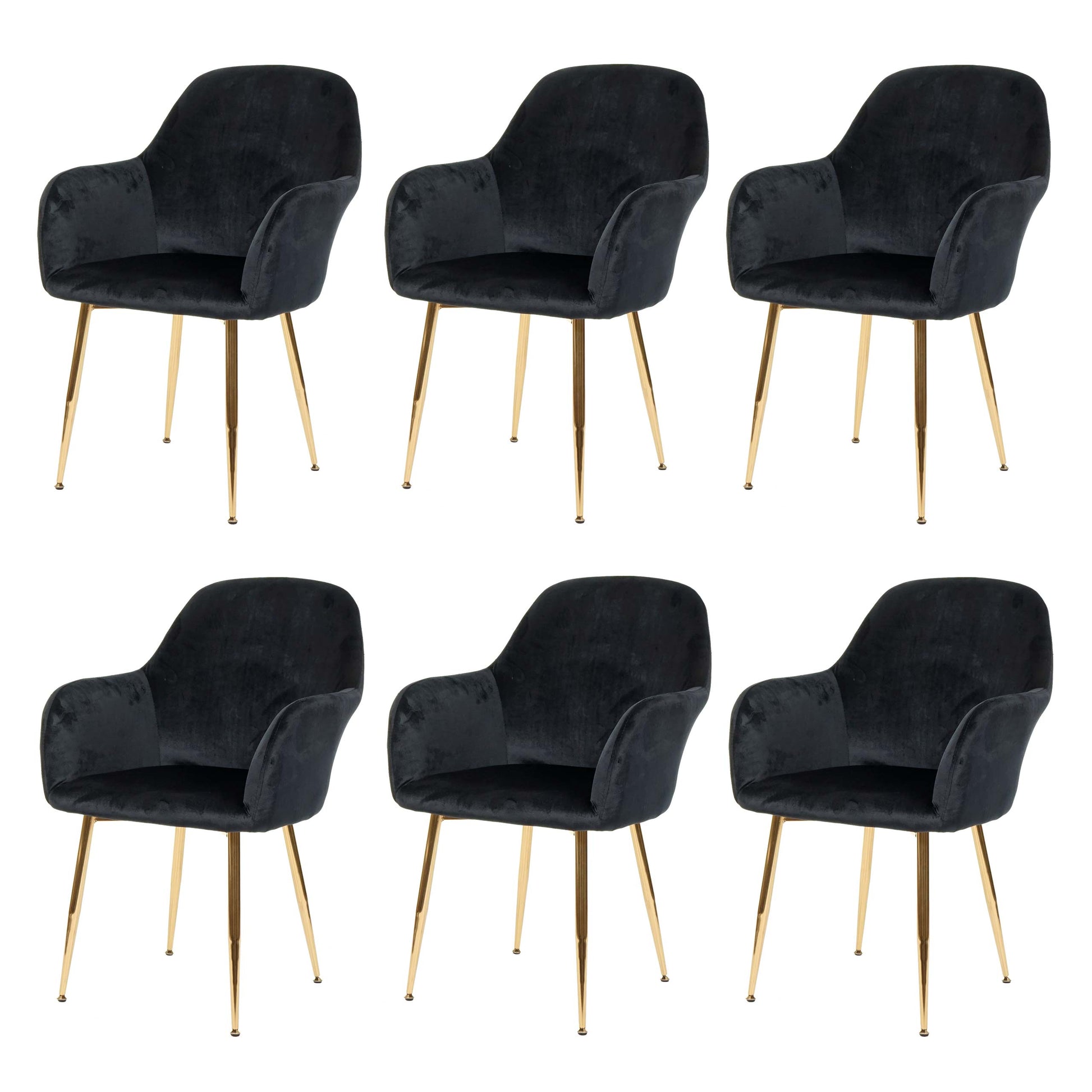 Cosmo Casa - Set van 6 Keukenstoelen - Retro - Fluweel - Zwart & Goud